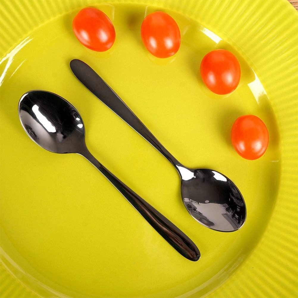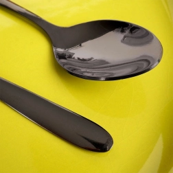 Set 2 čajnih žličk v globoki črni barvi združuje eleganten dizajn in vsakdanjo praktičnost. Izdelane iz kakovostnega nerjavečega jekla, so trpežne, dobro ležijo v roki in se lepo podajo h klasičnemu in modernemu posodju. Primerne za postrežbo kave, čaja in sladic.