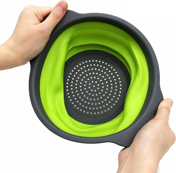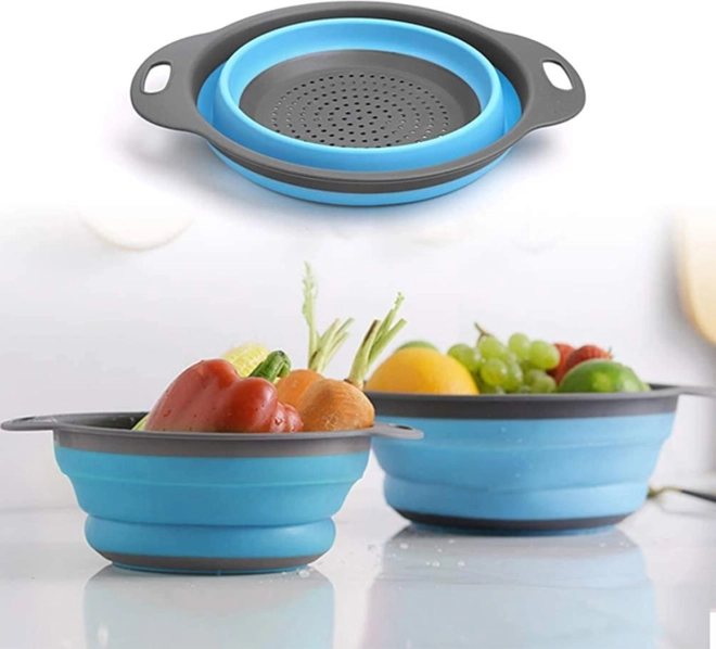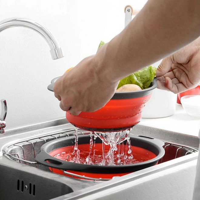 Ko je zloženo, je cedilo visoko le 3 cm, kar olajša prenašanje ali shranjevanje v omari.