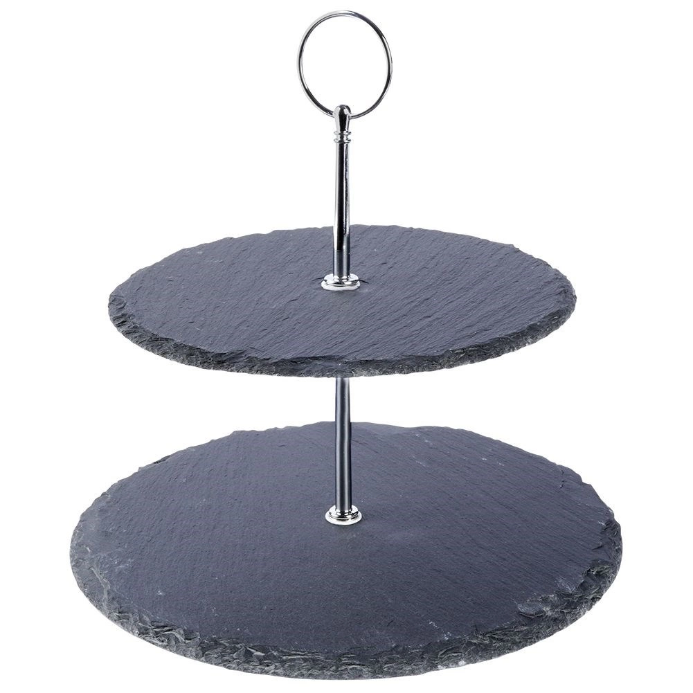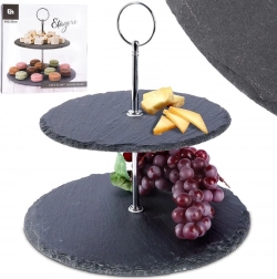 Namizju dodajte pridih prefinjenosti z dvostopenjskim stojalom iz naravnega skrilavca višine 23 cm. Dve okrogli plošči različnih premerov ponujata dovolj prostora za mafine, piškote, mini tortice in slan(e) kanapeje. Naravni skrilavec navduši z rustikalnim videzom in se odlično poda tako modernim kot klasično zasnovanim interierjem.