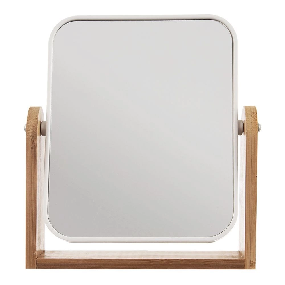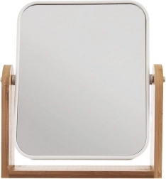 Odkrijte eleganco in funkcionalnost v enem. Dvostransko ogledalo WHITNEY je odlična izbira za toaletno mizico, komodo ali pisalno mizo. Zahvaljujoč stabilnemu bambusnemu podstavku in čistemu belemu okvirju se popolno poda tako v moderne kot minimalistične prostore.