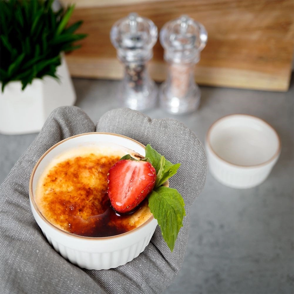 Primerno za pomivalni stroj, mikrovalovko in zamrzovalnik. Idealno za crème brûlée, sufle, zapečene porcije, pomake in majhne prigrizke.