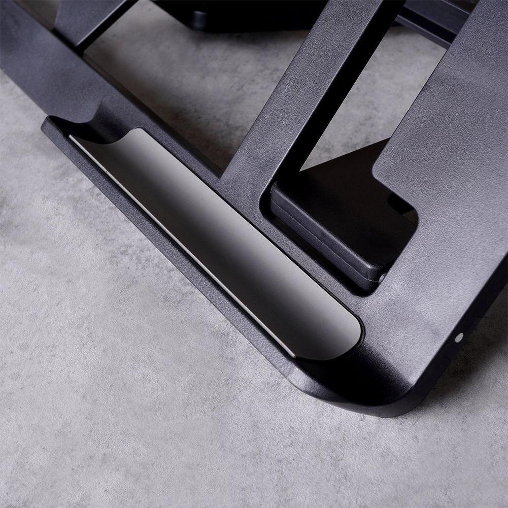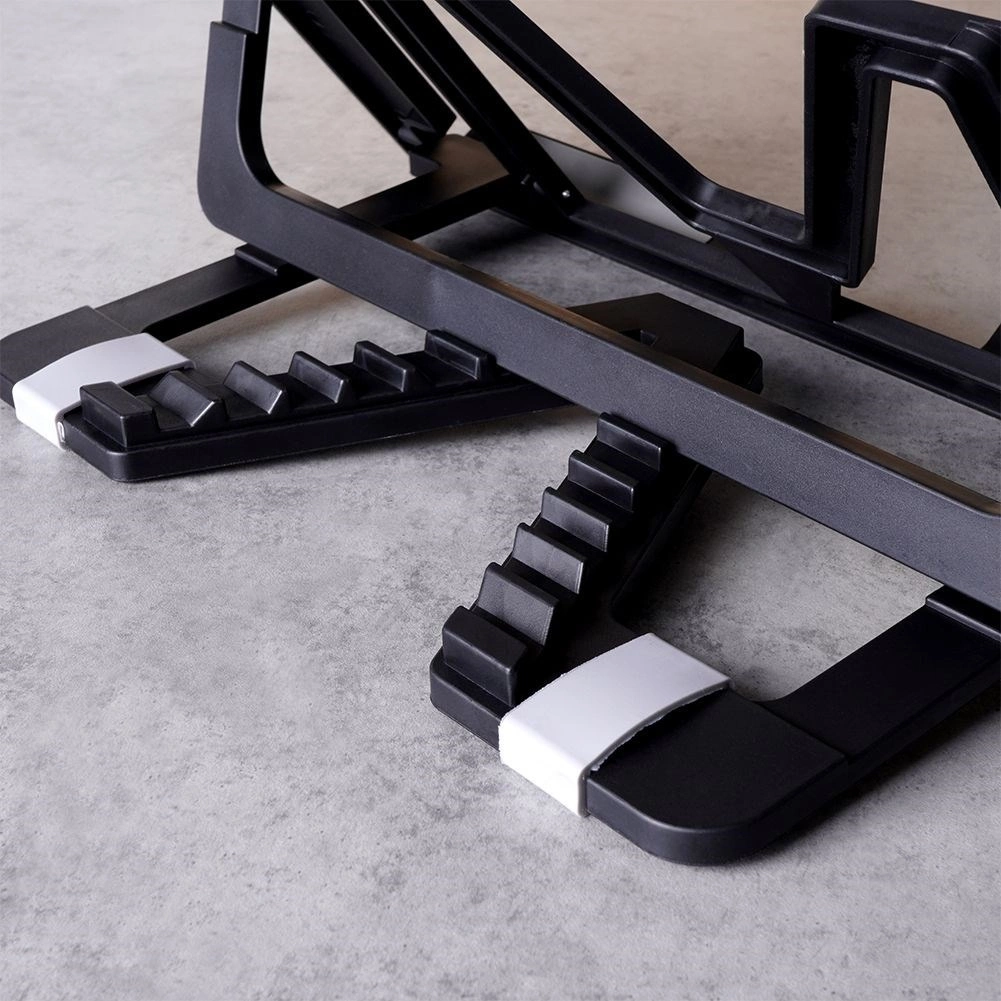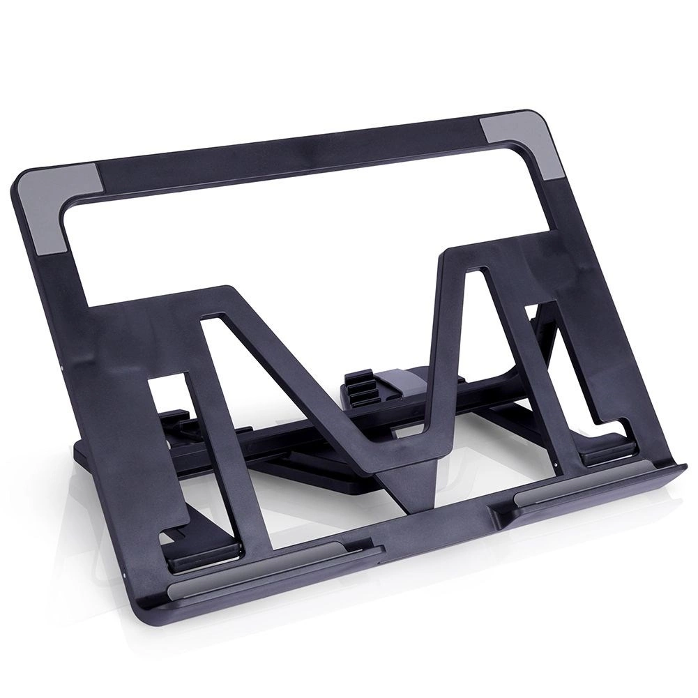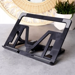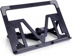 Stojalo je izdelano iz kakovostne in trpežne plastike s čvrstimi deli iz ABS, ki zagotavljajo stabilnost. Nedrseče blazinice ščitijo napravo in preprečujejo premikanje po mizi. Po uporabi ga preprosto zložite na ravno – popolno za prenašanje in shranjevanje.