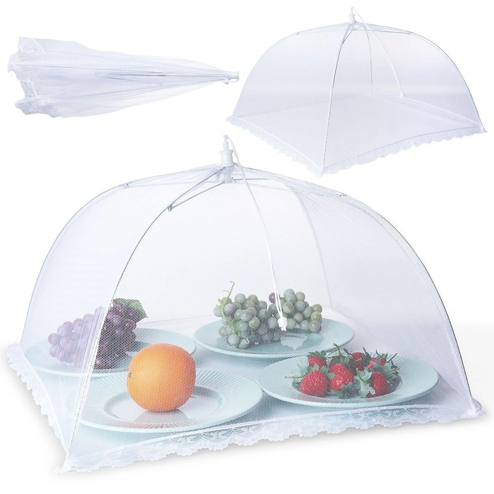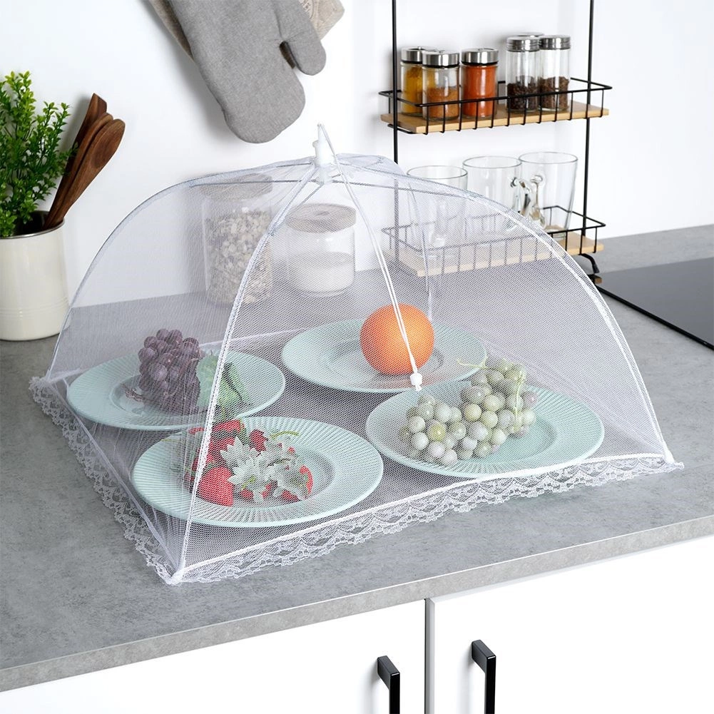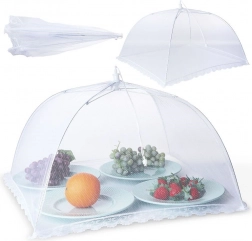 Ohranite svoje jedi čiste in varne pred muhami, osami in drugim mrčesom. Zložljiva mrežica za živila z drobno mrežo zanesljivo prekrije krožnike, sklede in pladnje, obenem pa omogoča, da hrana diha in se vlaga ne zadržuje. Primerna za vsakodnevno uporabo in sezonsko obedovanje na prostem.
