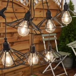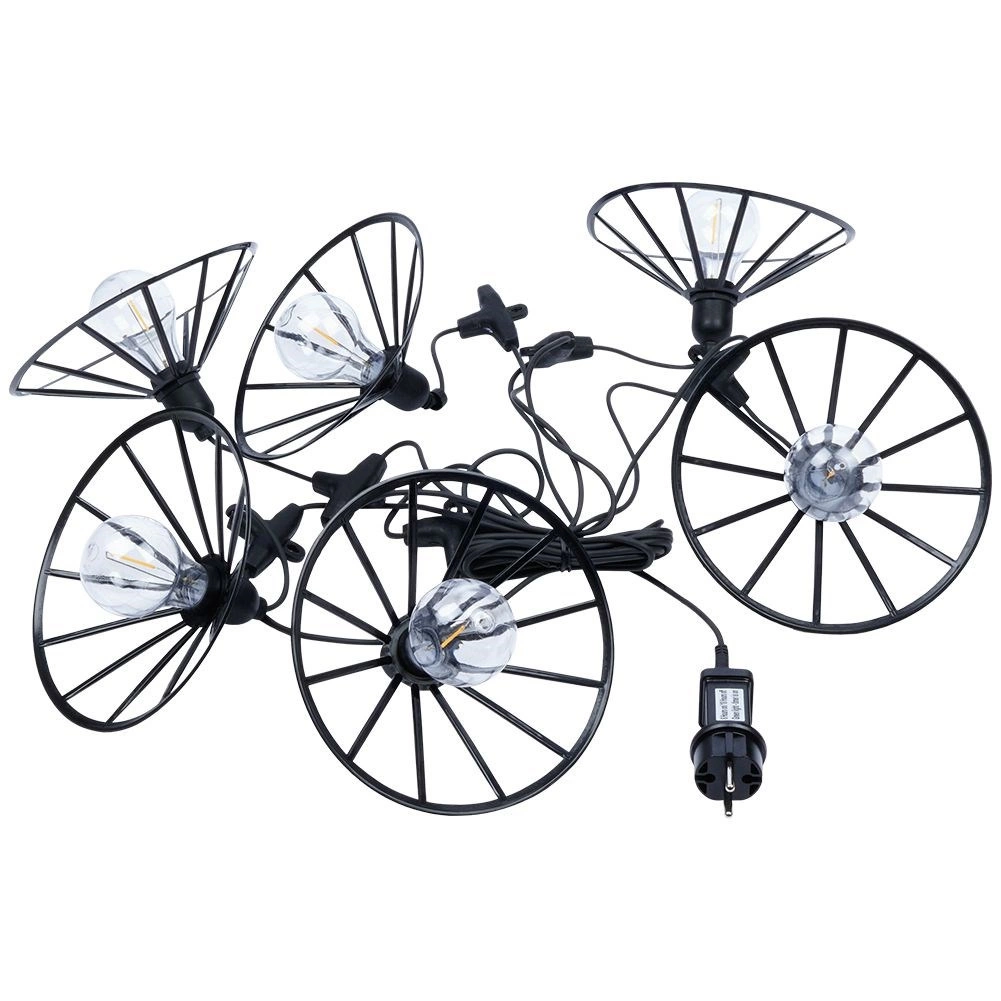 Ta dekorativna svetlobna girlanda bo vašemu zunanjemu prostoru dodala prijeten, domač pridih. Šest prozornih LED žarnic s toplo barvo svetlobe v elegantnih črnih kletkah enakomerno razprši svetlobo in ustvari prijetno vzdušje za vsakodnevno druženje in slavnostne priložnosti.