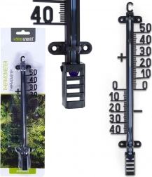 Slogoven termometer v klasični izvedbi, ki zanesljivo meri okoljsko temperaturo v notranjih in zunanjih prostorih. Velike številke in izrazite črtice zagotavljajo odlično berljivost tudi z večje razdalje. Zaradi kompaktnih mer 6 × 2,5 × 25 cm je primeren za steno hiše, pergolo, balkon ali hodnik.