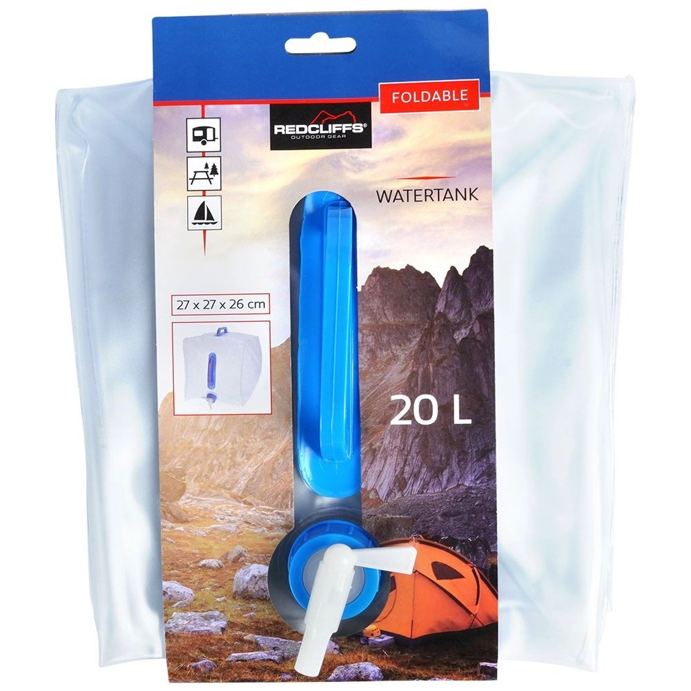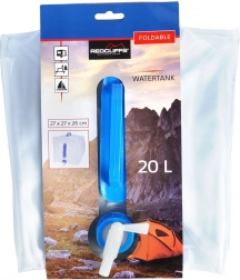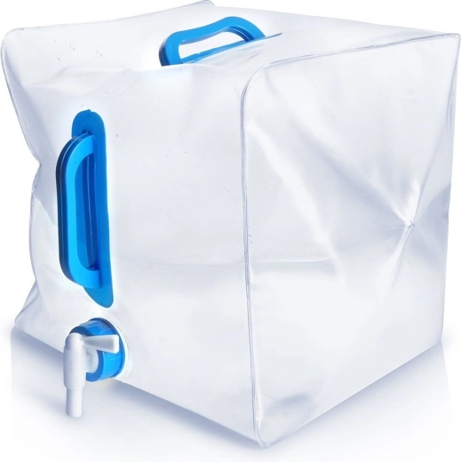 Zložljiv kanister za pitno vodo s prostornino 20 litrov je izdelan iz kakovostne prozorne plastike, ki je odporna in hkrati lahka. Vgrajena pipica omogoča nadzorovano nalivanje brez polivanja, ergonomska ročaja pa olajšata prenašanje tudi polnega rezervoarja.