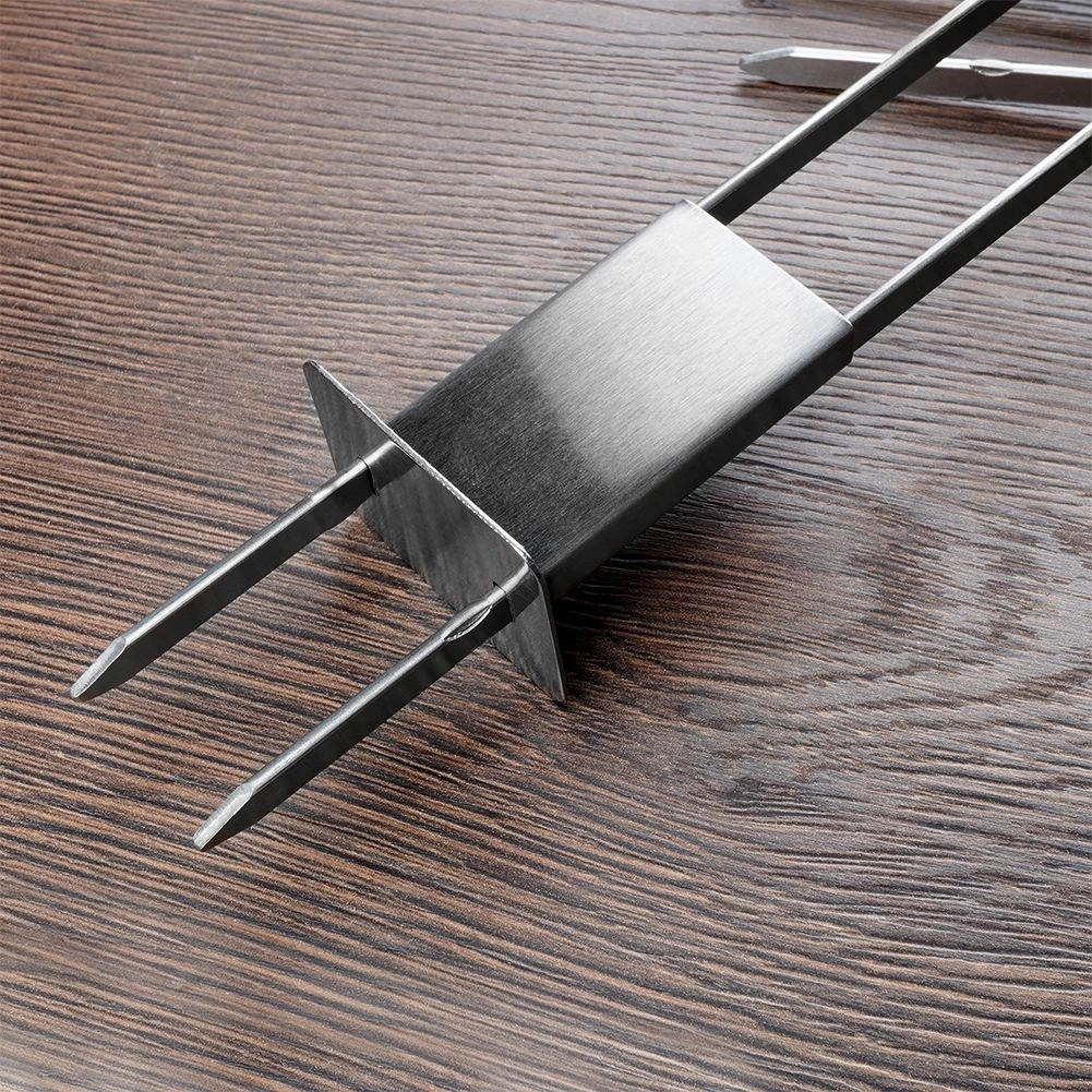 Odkrijte stabilnost in udobje pri pripravi nabodal. Dvojna zasnova drži koščke mesa, zelenjave in klobas na mestu, zato se pri obračanju na žaru ne vrtijo. Cenili boste trdno konstrukcijo iz nerjavečega jekla, ki je odporna, higienska in enostavna za čiščenje.