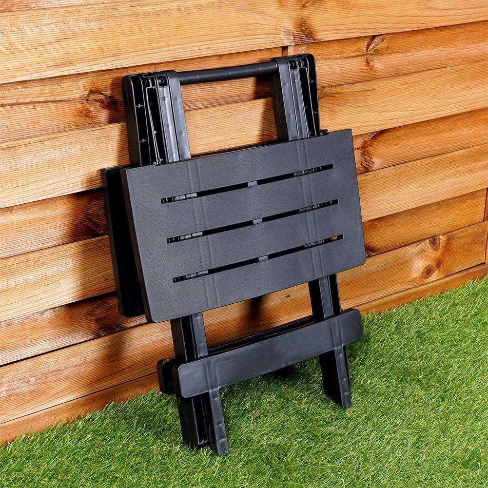 Iščete praktično in vsestransko mizico za zunanjo uporabo? Ta zložljiva vrtna mizica v črni barvi je odlična izbira za vrt, balkon, teraso in potovanja. Stabilna konstrukcija s štirimi nogami zagotavlja zanesljivo uporabo, bodisi za serviranje, odlaganje pijač ali kot podstavek za rože in dekoracije.