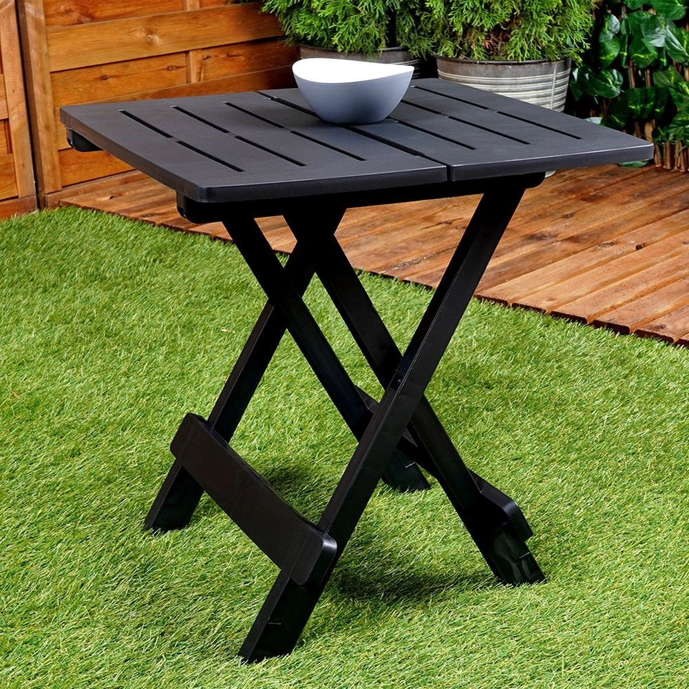 Zaradi nizke teže, udobnega ročaja in ploske oblike po zložitvi se enostavno shranjuje in prevaža v avtomobilu. Mizica je izdelana iz visokokakovostne plastike, ki je odporna na vremenske razmere in enostavna za vzdrževanje – idealna za celoletno zunanjo uporabo.