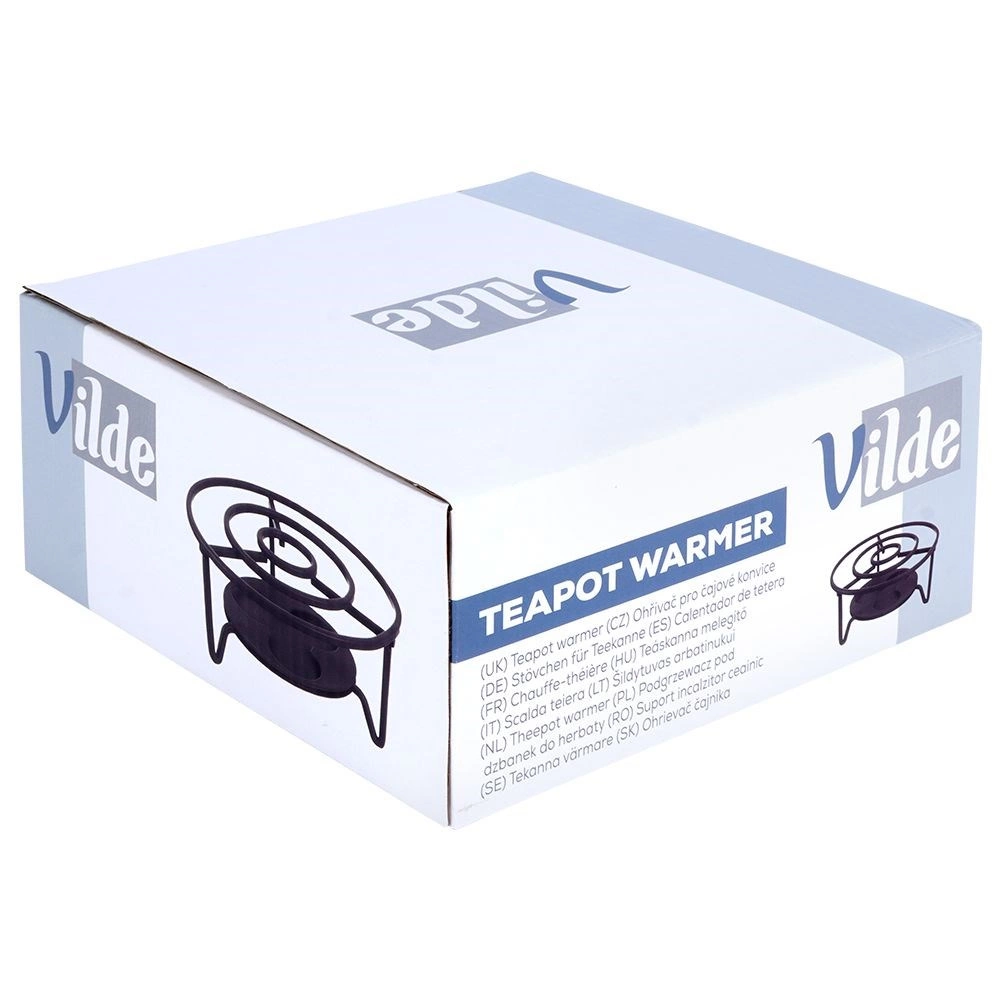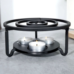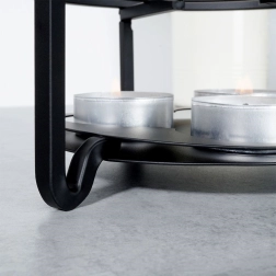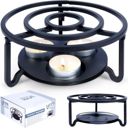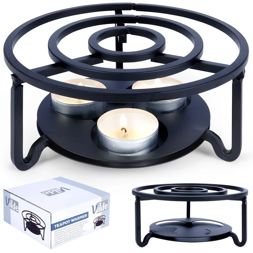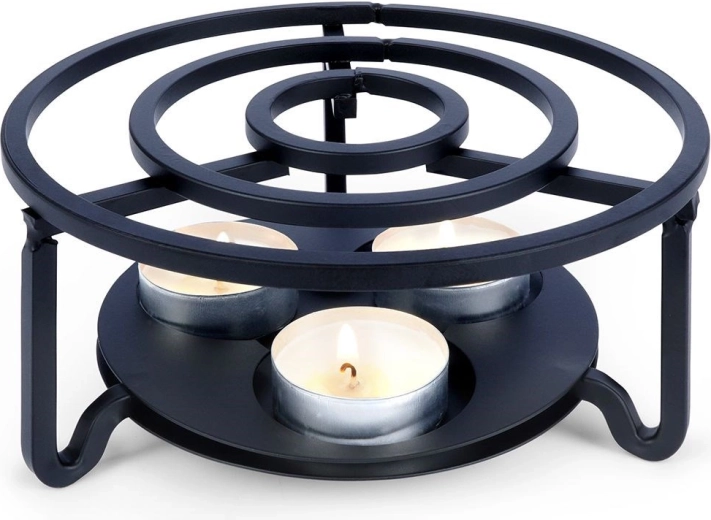 Univerzalni kovinski grelnik za čajnik in druge posode bo vaše napitke in jedi dlje časa ohranjal tople kar na mizi. Ima premer 16,5 cm in višino 7,5 cm, ponuja prostor za 3 čajne svečke (tealight) in se zahvaljujoč čvrsti kovinski konstrukciji v črni barvi odlično poda v vsak interier.