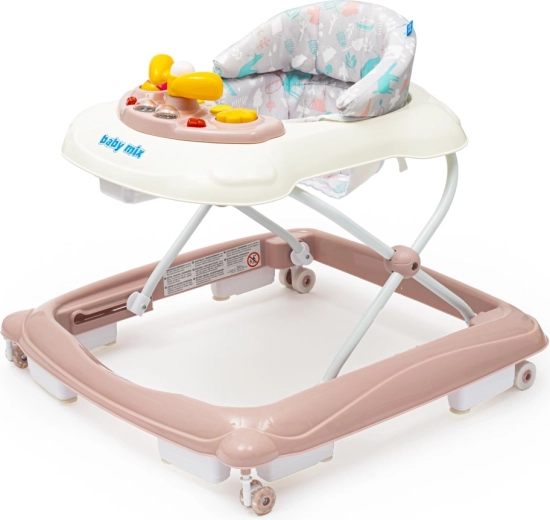 Hojnik BABY MIX je zasnovan za otroke od 6 mesecev in združuje zabavo z varno podporo pri učenju hoje. Multimedijska plošča s svetlobnimi učinki, trobljo in vrtljivim volanom spodbuja aktivno igro ter razvija motoriko in čute. Sedež z udobnim oblazinjenjem je mogoče preprosto sneti in oprati, zato je vzdrževanje enostavno.