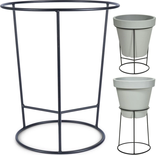 Dvostransko kovinsko stojalo v črni barvi je zasnovano za varno in estetsko postavitev cvetličnih loncev. Robusten jeklen okvir s prašnim lakom zagotavlja dolgo življenjsko dobo in odpornost pri vsakodnevni uporabi. Minimalistične linije poudarijo videz rastlin in se brez težav podajo k modernemu in industrijskemu slogu.
