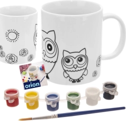 Ustvarite svojo lastno izvirno skodelico z motivom sove! Ta porcelanasta skodelica s prostornino 330 ml je namenjena dodelavi s priloženimi akrilnimi barvami in čopičem. Idealna za vsakodnevno pitje čaja, kakava ali mleka, ima udoben ročaj in je primerna za pomivalni stroj in mikrovalovno pečico. Kreativni komplet za otroke od 3 let naprej in odrasle, enostavna fiksacija barv v pečici ter dolgá življenjska doba zahvaljujoč kakovostnemu porcelanu.