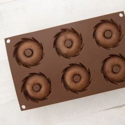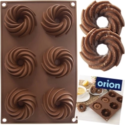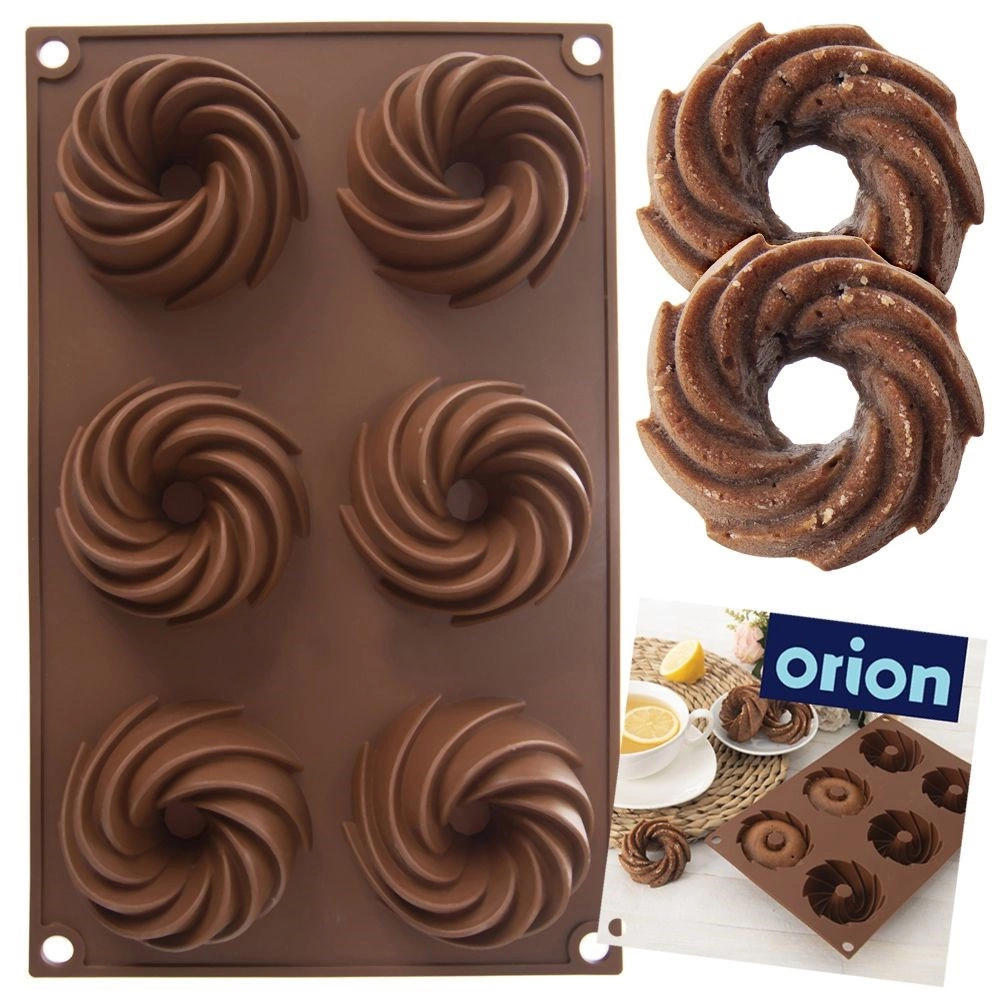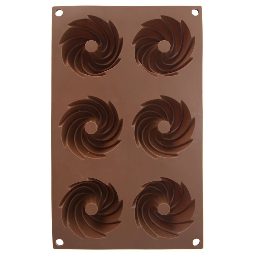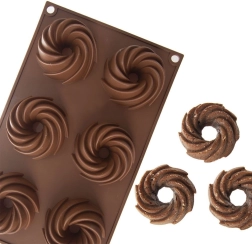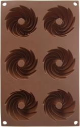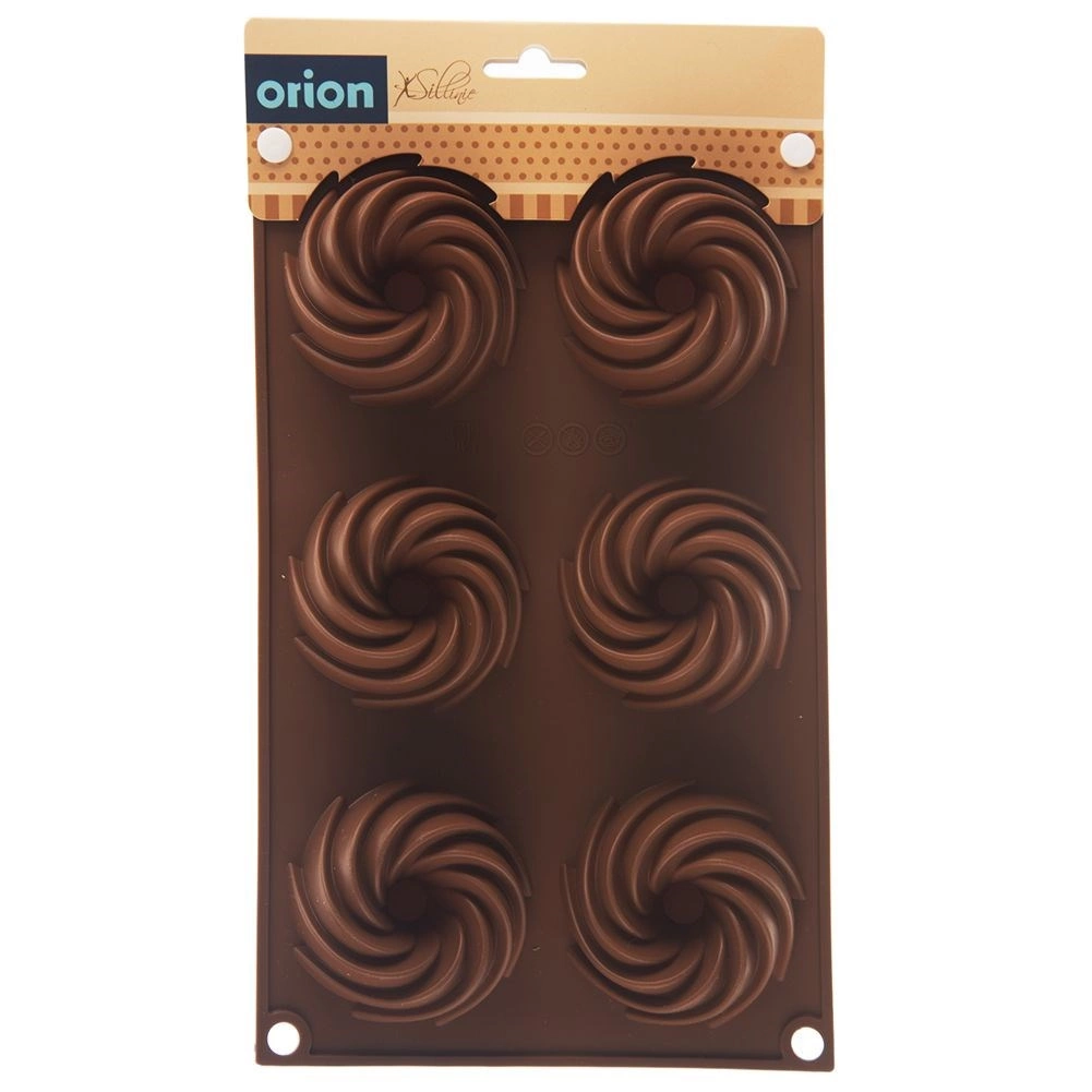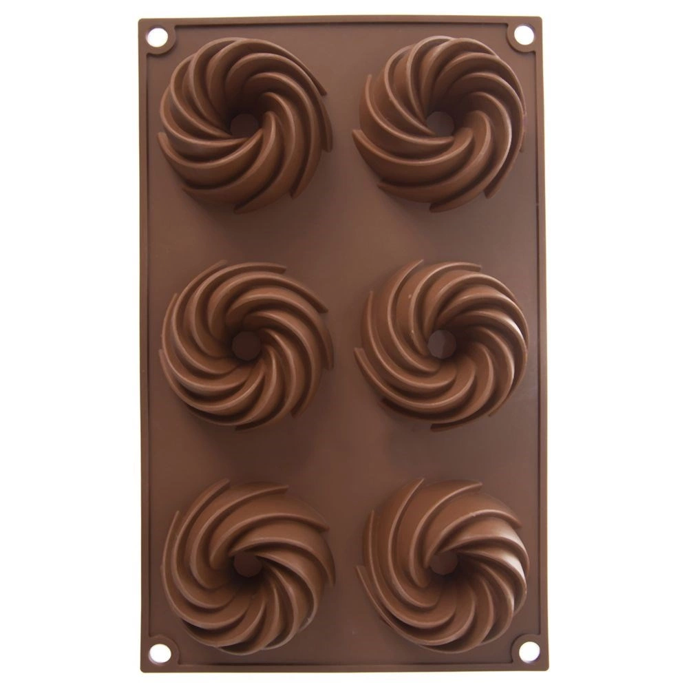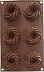 Praktična razporeditev 6 vdolbin z okrasno spiralno obliko za enakomerno peko in privlačen videz sladic.
