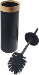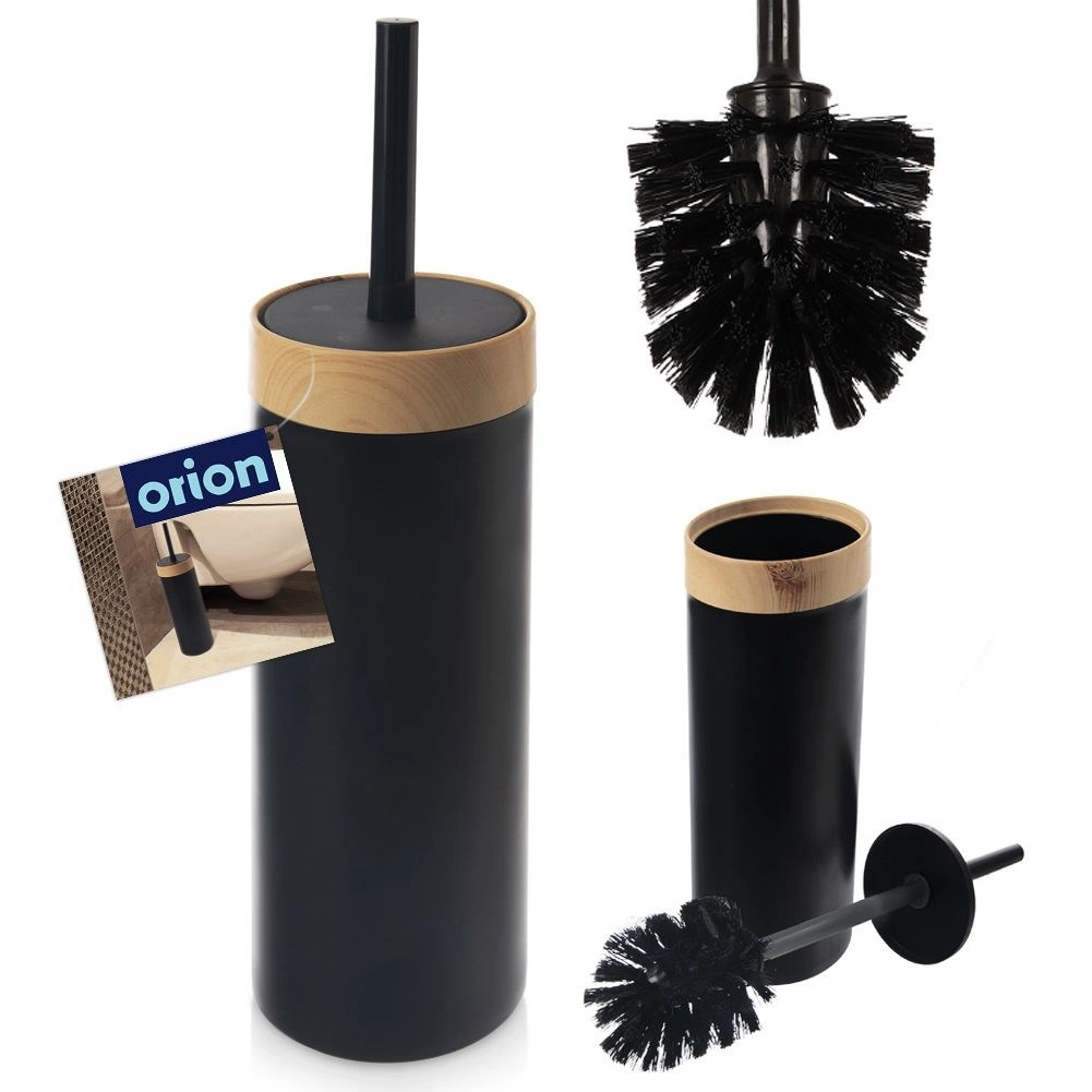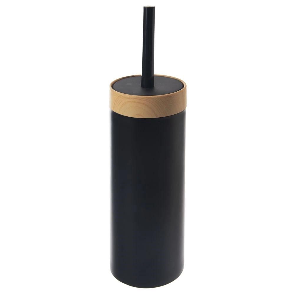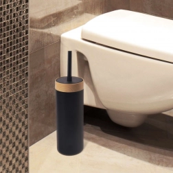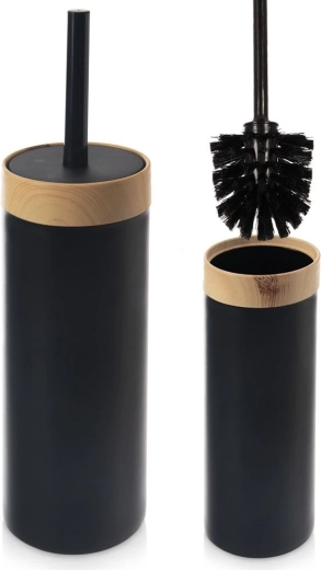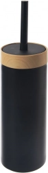 Stilska toaletna ščetka s stojalom združuje moderen videz in funkcionalnost. Črna izvedba s podrobnim dekorjem imitacije lesa se poda tako klasičnim kot modernim interierjem. Odcejalnik ohranja visoko stopnjo higiene in olajša čiščenje.