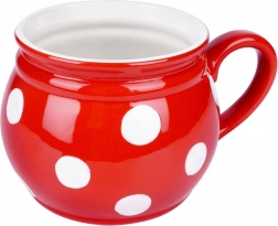 Uživajte v svojih najljubših toplih in hladnih napitkih v velikem slogu. Ta rdeča keramična skodelica z belimi pikami navduši s svojim klasičnim dizajnom in praktično obliko, ki popolno sede v roko. Odlična izbira za domačo uporabo in se poda k vsaki namizni opremi.