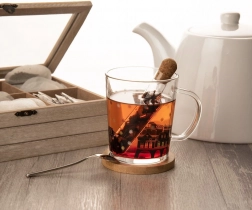 To elegantno stekleno cedilo v obliki fiolke omogoča udobno namakanje neposredno v skodelici ali kozarcu. Drobnje perforacije prepuščajo poln okus in aromo napitka, medtem ko listi ostanejo znotraj. Plutovinast zamašek je dovolj dolg za varno izvleko brez tveganja opeklin.