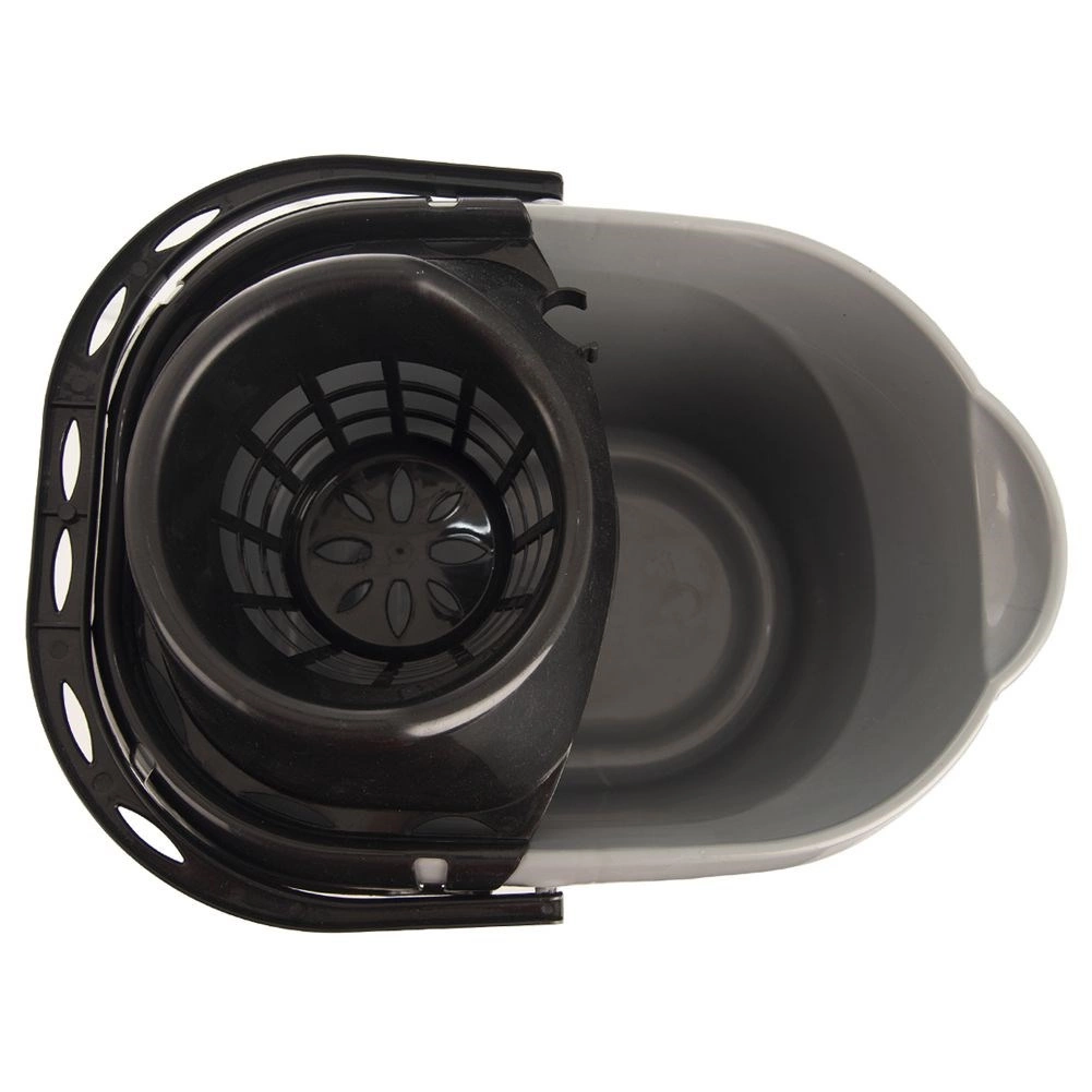 Olajšajte si čiščenje z robustnim vedrom za mop, ki združuje trpežno plastiko, ergonomski oprijem in učinkovito ožemanje. Zahvaljujoč vgrajenemu ožemalniku in posebnemu držalu za palico lahko hkrati prenesete vedro in mop ter imate vse pod nadzorom.