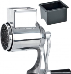 Odkrijte zanesljivo pomočnico v kuhinji: ročni nerjavni strgalnik s pritrditvijo. Združuje kakovostno nerjavno jeklo in odporne plastične dele v črni barvi za dolgo življenjsko dobo in udobno vsakodnevno uporabo. Z tradicionalnim mehanskim pogonom in udobnim ročajem brez truda pripravite sveže drobtine ali fino naribane orehe, čokolado ali sir.