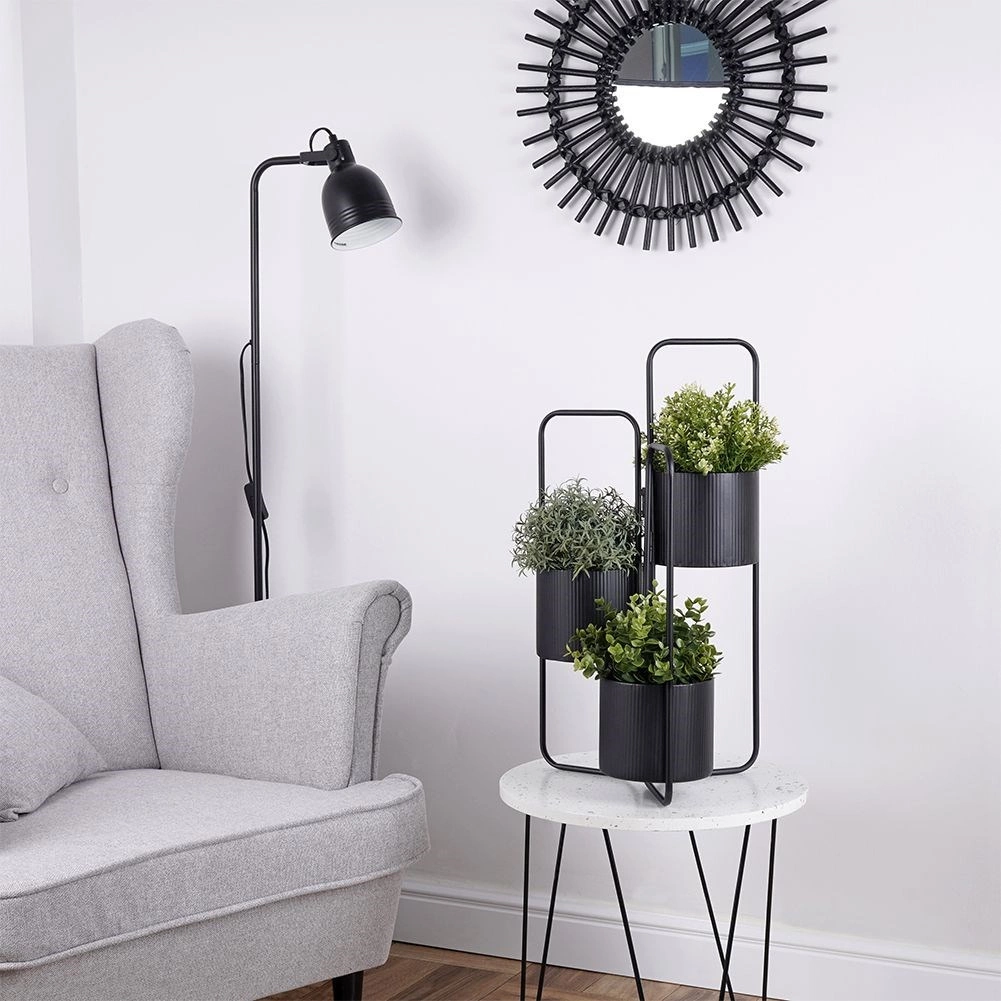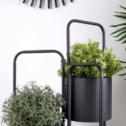 Odkrijte eleganten in praktičen način za razstavljanje svojih najljubših rastlin. To kovinsko stojalo za rože v industrijskem loft slogu ima tri ravni s poličkami velikosti 14 × 12,5 cm za lončke do premera 13,5 cm. Zahvaljujoč kompaktnih meram 33 × 24 × 57 cm prihrani prostor in hkrati ustvari izrazito dekoracijo v dnevni sobi, kuhinji, delovni sobi ali pisarni.