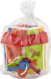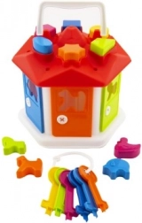 Vstavljanka hiška je prilagojena za najmlajše otroke, da se na zabaven način učijo prepoznavanja različnih geometrijskih oblik in barv. Sestavljena je iz hiške z odprtinami na strehi za vstavljanje posameznih plastičnih oblik. Barvna vrata se odprejo s pomočjo ključev, kar otrokom omogoča dodatno raven interakcije ter spodbuja potrpežljivost in reševanje problemov.