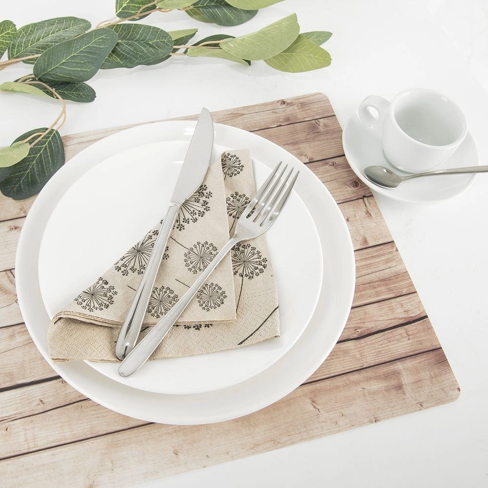 Praktična in dekorativna namizna podloga, ki ustvari enotno in estetsko pogrinjanje za krožnike in pribor. Realističen lesni dekor doda mizi domačen videz ter hkrati zagotovi zanesljivo zaščito površine pred madeži, toploto in manjšimi mehanskimi poškodbami.