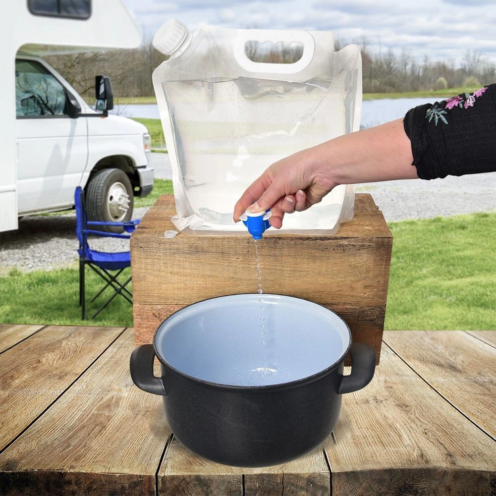 Zložljiv rezervoar za pitno vodo 4,8 l je zanesljiv pomočnik za kampiranje, izlete, ribolov, plažo in delo na vrtu. Prožno telo se po izpraznitvi zloži v kompaktne mere, zato v nahrbtniku ali avtu zavzame minimum prostora. Integrirana pipa omogoča nadzorovano in čisto pretakanje brez razlivanja.