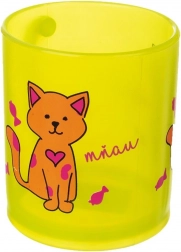 Praktična otroška skodelica z veselým motivom mačke popestri vsakodnevno pitje. Zahvaljujoč polprozornemu dizajnu otrok zlahka vidi, koliko pijače je še v skodelici. Lahka, a trpežna plastika brez BPA zagotavlja varno in udobno uporabo doma in na vrtu.