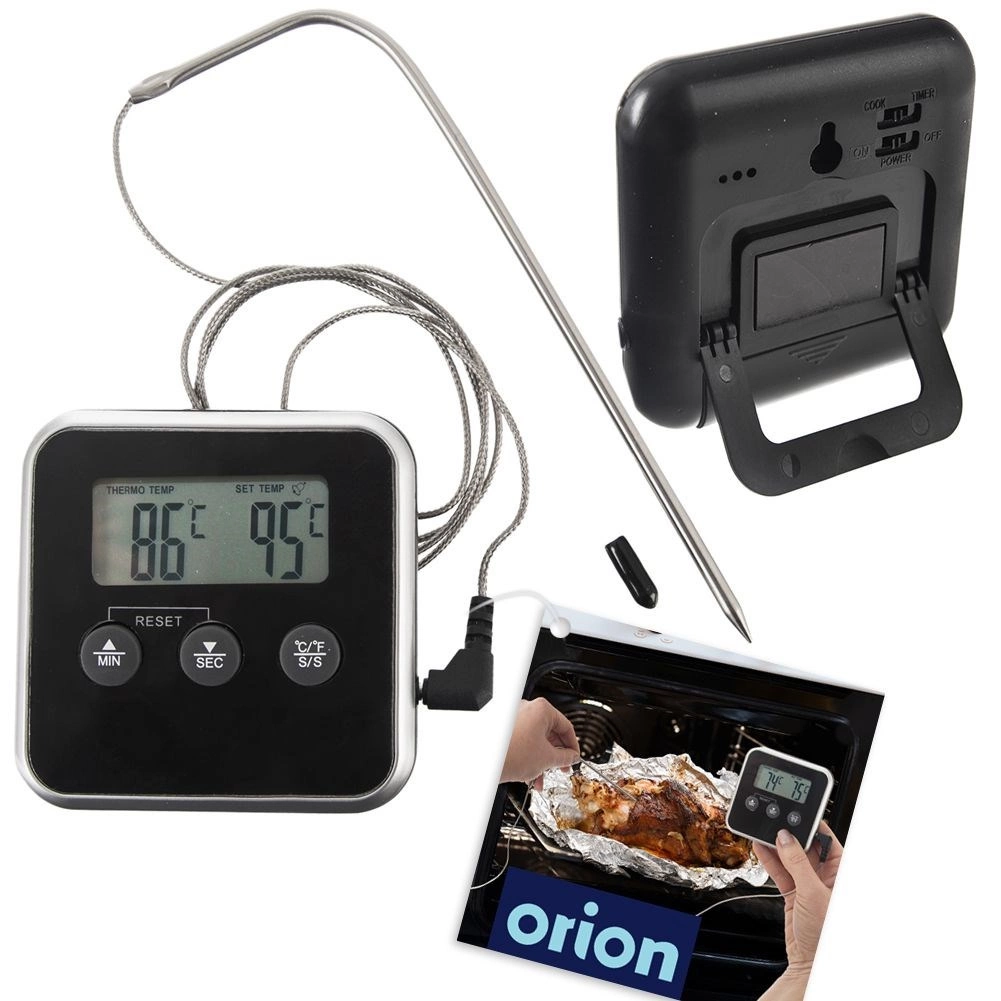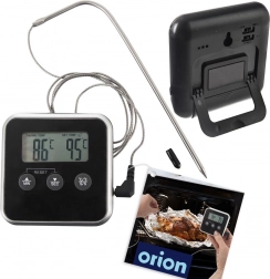 Vedno dosezite popolne rezultate pri kuhanju, peki in pripravi na žaru. Digitalni termometer ORION z nerjavečo sondo zanesljivo meri notranjo temperaturo mesa, omak in slaščičarskih zmesi. Merilno območje -20 °C do +300 °C, pregleden LCD zaslon in možnost preklopa na °C/°F olajšajo delo v kuhinji.
