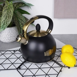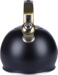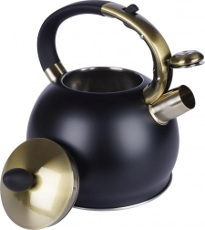 Ta stilski čajnik je izdelan iz kakovostnega nerjavnega jekla, ki je trpežno in nevtralno po okusu. Zaradi kombinacije mat črnine in zlatih poudarkov bo postal dizajnerski okras vaše kuhinje – naj bo moderna ali klasična. Praktičen odstranljiv pokrov olajša dolivanje vode in čiščenje.