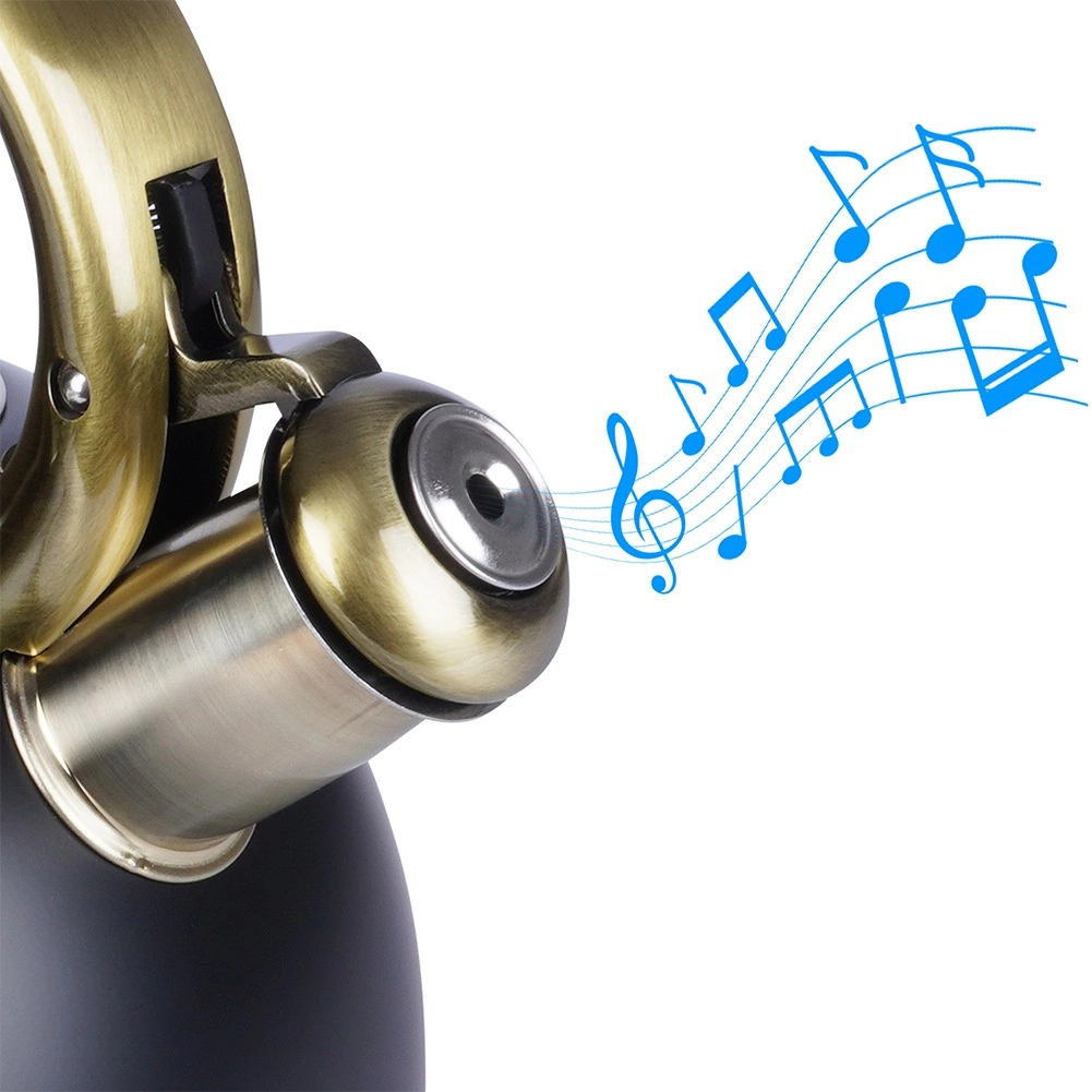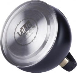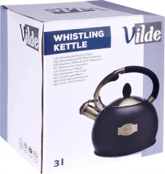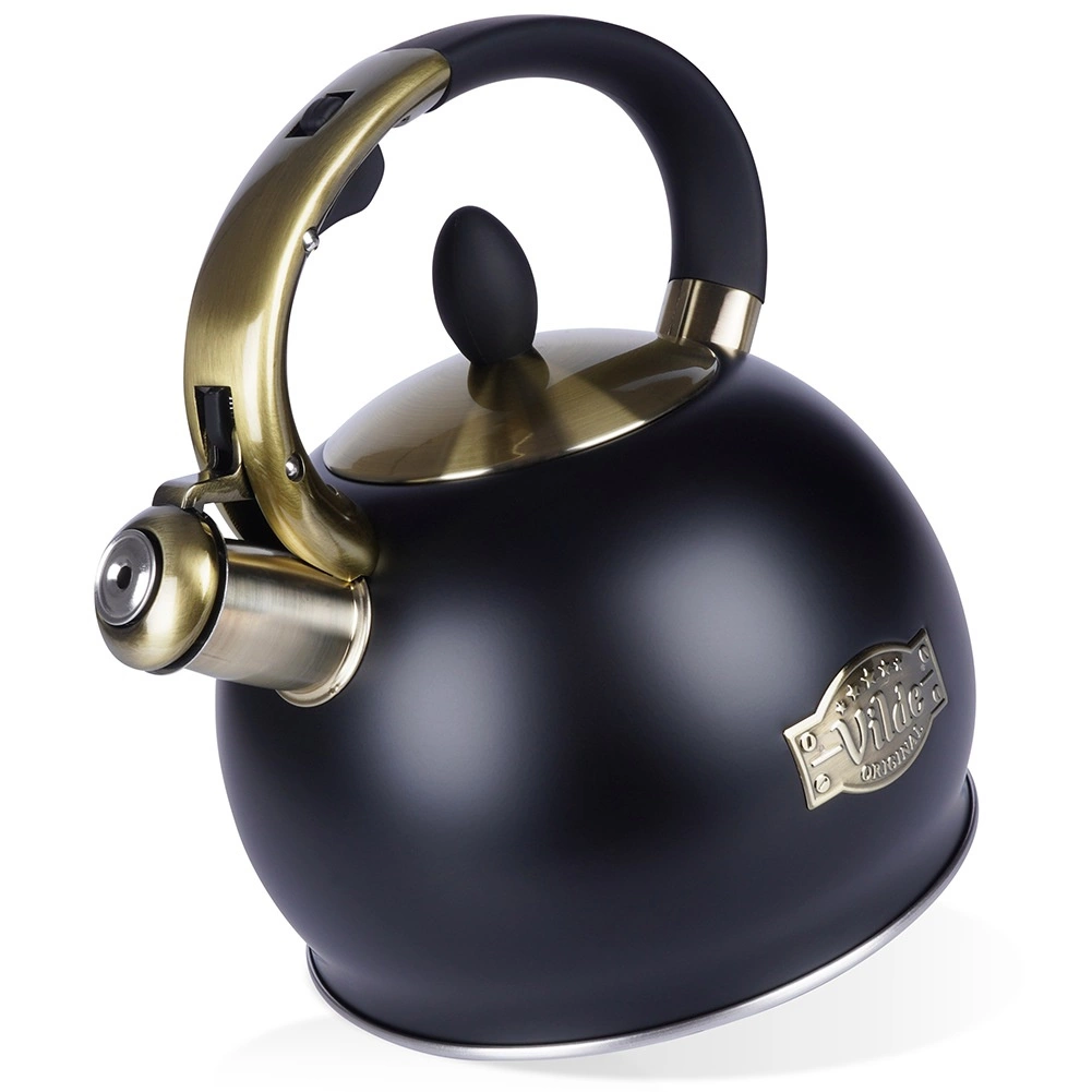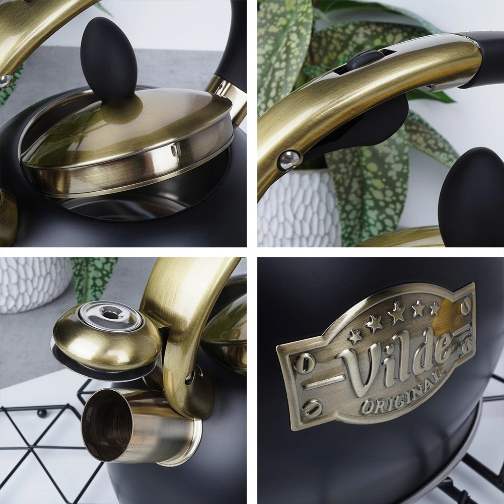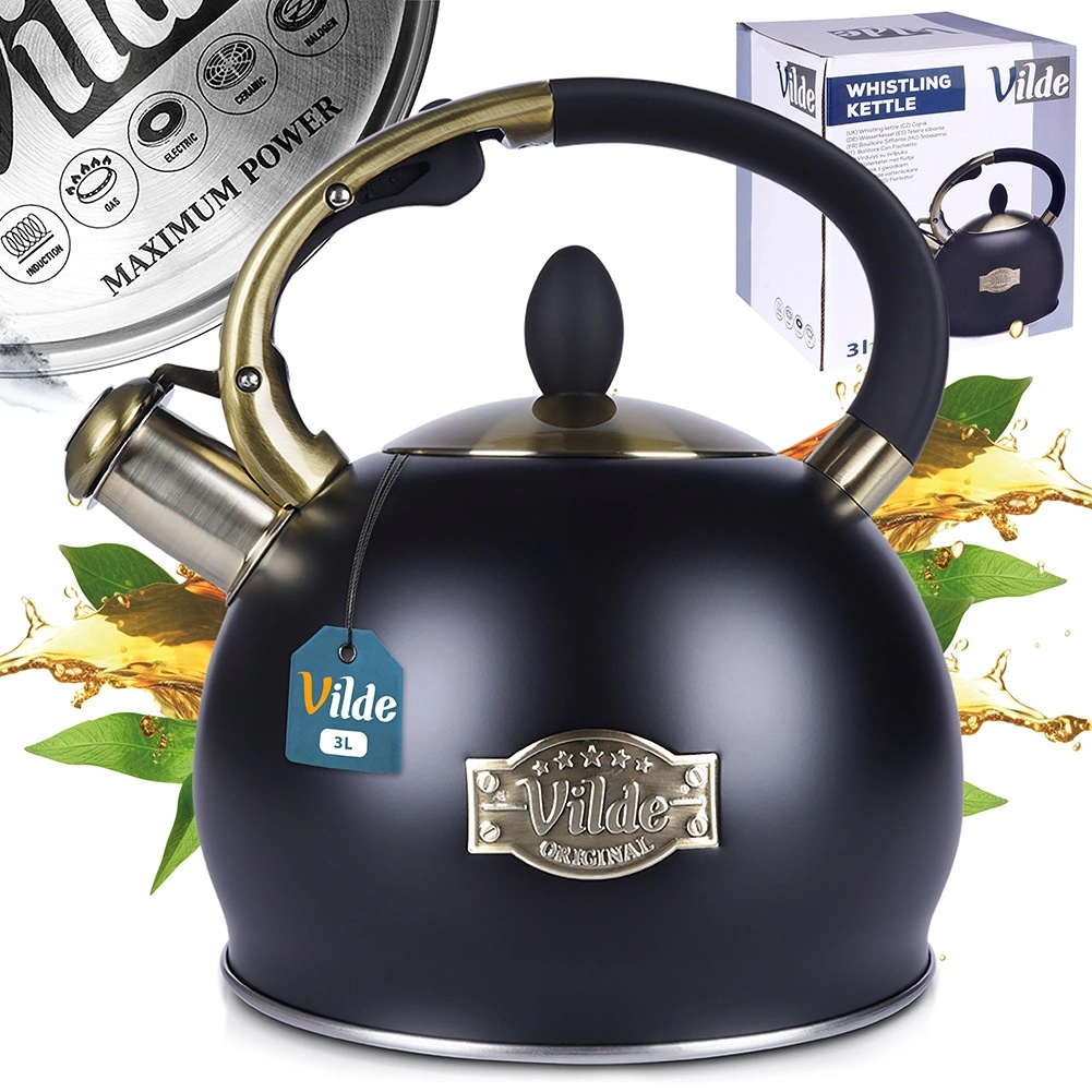 Mat črnina v kombinaciji z medeninastimi detajli in emblemom Vilde daje čajniku brezčasen videz, ki se odlično poda tako v moderno kot klasično kuhinjo.