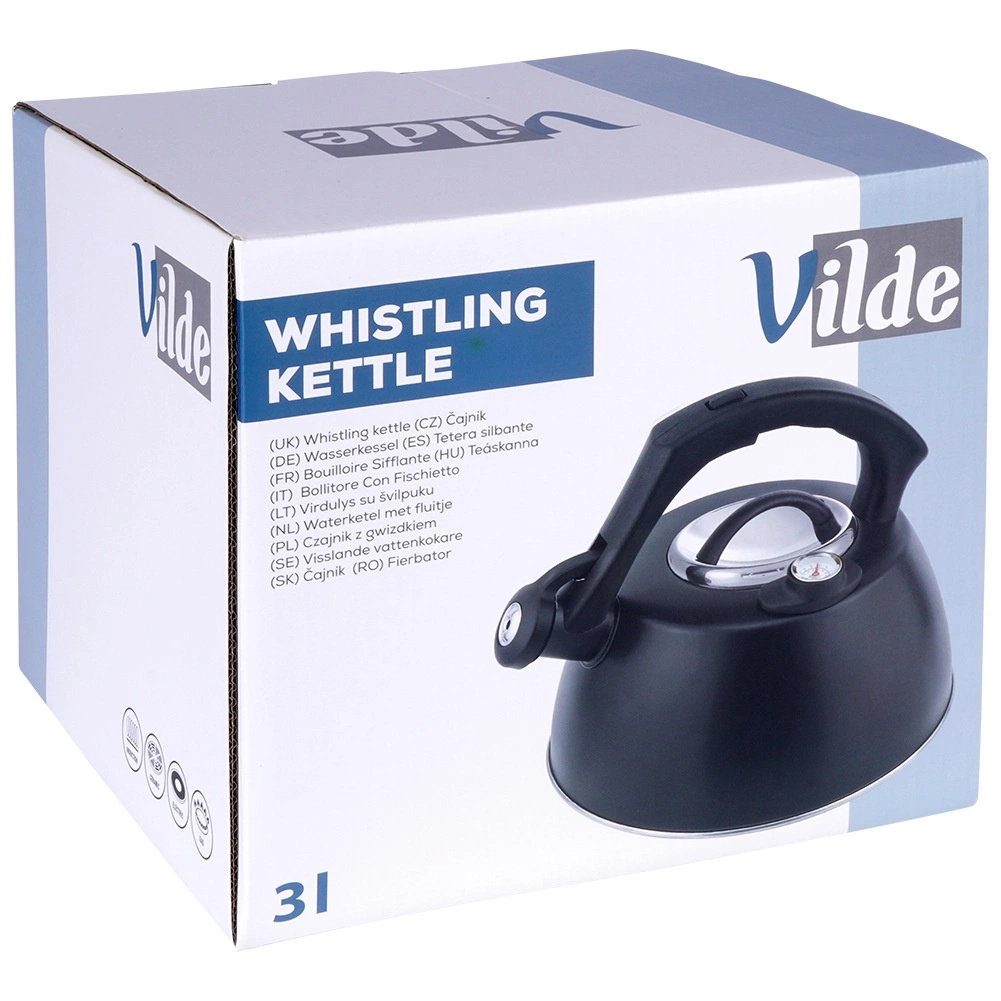 Ergonomski ročaj s površino soft touch je prijeten na dotik in zagotavlja zanesljiv oprijem. Odstranljiv pokrov olajša polnjenje in čiščenje. Čajnica je primerna za plinske, električne, steklokeramične in indukcijske kuhalne plošče. Skupna prostornina je 3 l, priporočena uporabna prostornina približno 2,2 l.