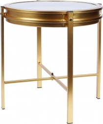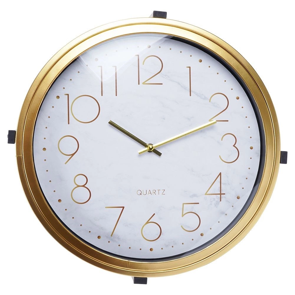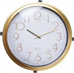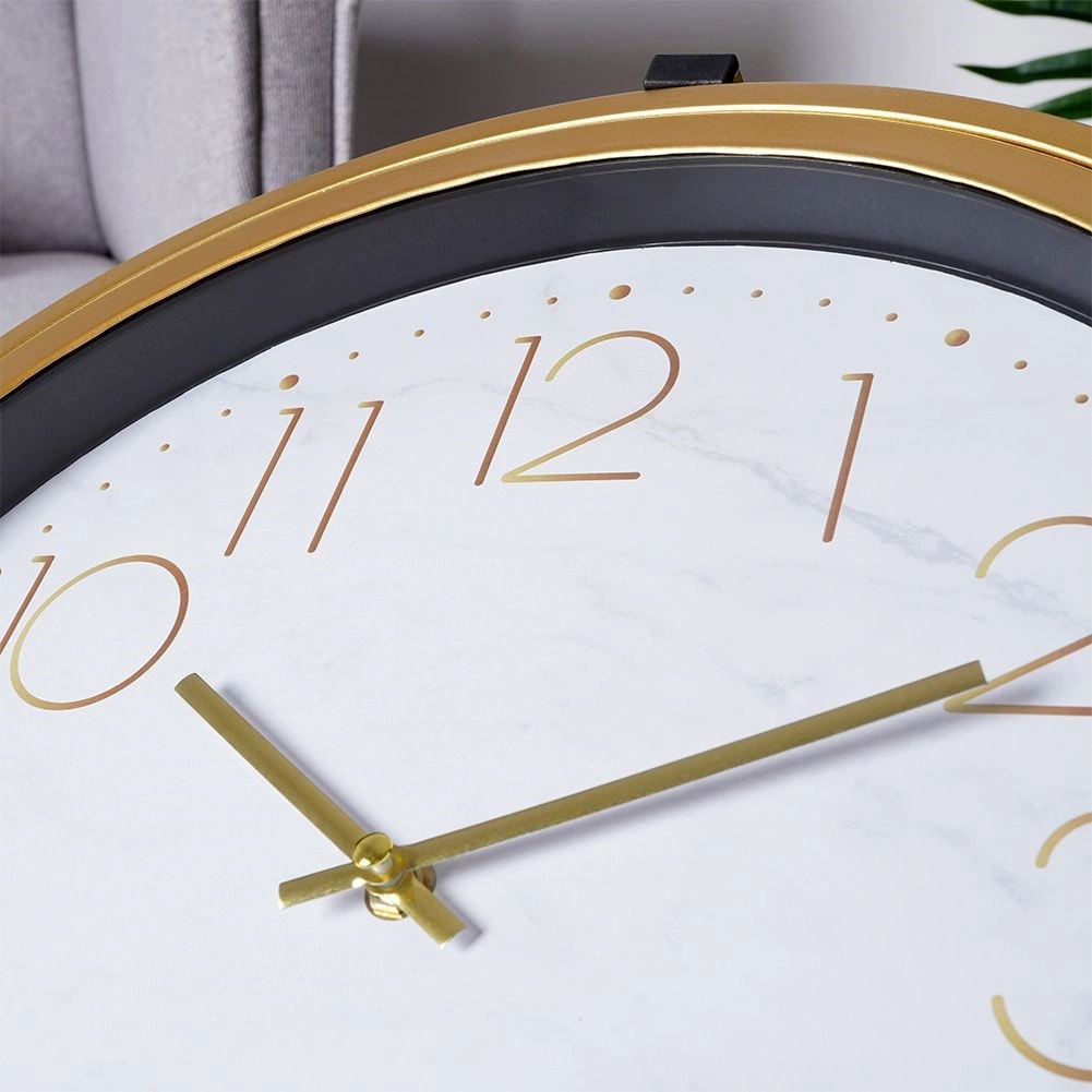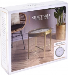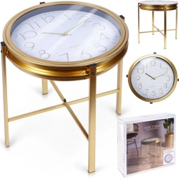 Ta izvirna mizica 2 v 1 združuje funkcijo majhne odlagalne mizice in stenske ure neposredno v plošči. Ura je zaščitena z močnim steklom, zaradi belega ozadja in zlatih elementov pa je odlično berljiva tudi od daleč. Elegantna zlata izvedba se poda tako modernim kot klasičnim interierjem in bo postala izrazit dekorativni element.