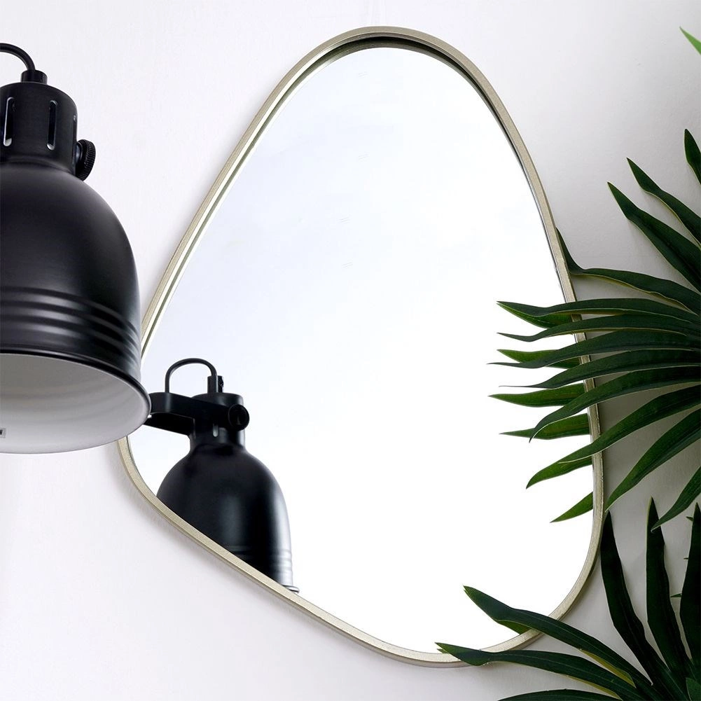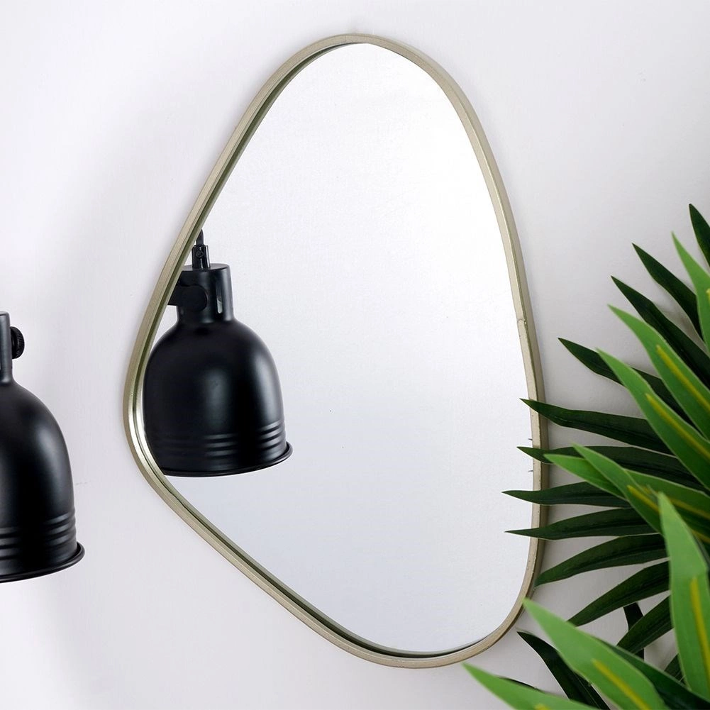Poživite svoj interier z ogledalom, ki združuje funkcionalnost in moderno eleganco. Nepravilna oblika izstopa v klasičnih in sodobnih prostorih, medtem ko šampanjsko zlata barva okvirja prostoru doda sofisticiran pridih. Ogledalo je idealno kot praktičen pomočnik za vsakodnevno uporabo in kot dekorativni element, ki optično poveča in posvetli prostor.