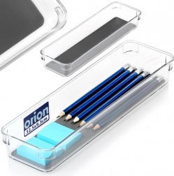 Prozorne stene in ozek pravokotni oblikovni format poskrbijo, da so svinčniki, pribor ali kozmetika ločeno shranjeni in vedno pri roki.