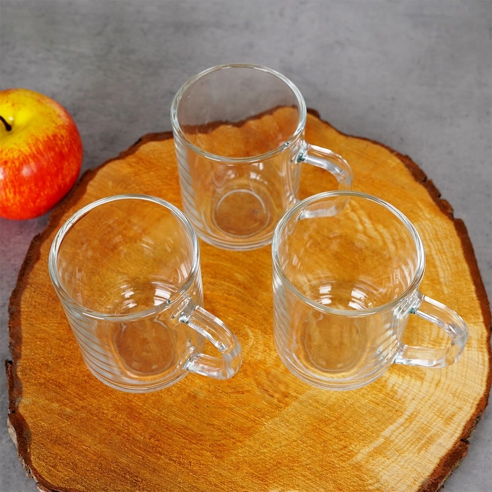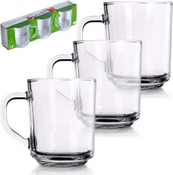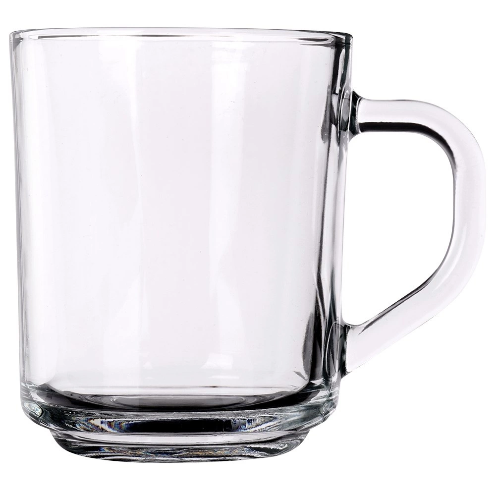 Elegantne steklene skodelice s čvrstim ročajem so idealne za serviranje kave, čaja, vode, soka in drugih napitkov. Prozorno steklo poudari barvo napitka, zahvaljujoč klasični valjasti obliki pa se skodelice udobno držijo in iz njih lepo pije.