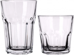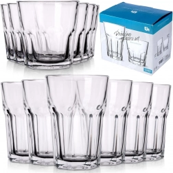 Ta eleganten set ponuja vse, kar potrebujete za stilsko serviranje hladnih pijač. Dve praktični velikosti (230 ml in 330 ml) pokrijeta vsakodnevno pitje in slavnostne priložnosti. Prozorno steklo z dekorativnim fasetnim reliefom lepo poudari barvo pijače, kozarci pa so zaradi debelih sten in dna odporni in stabilni.