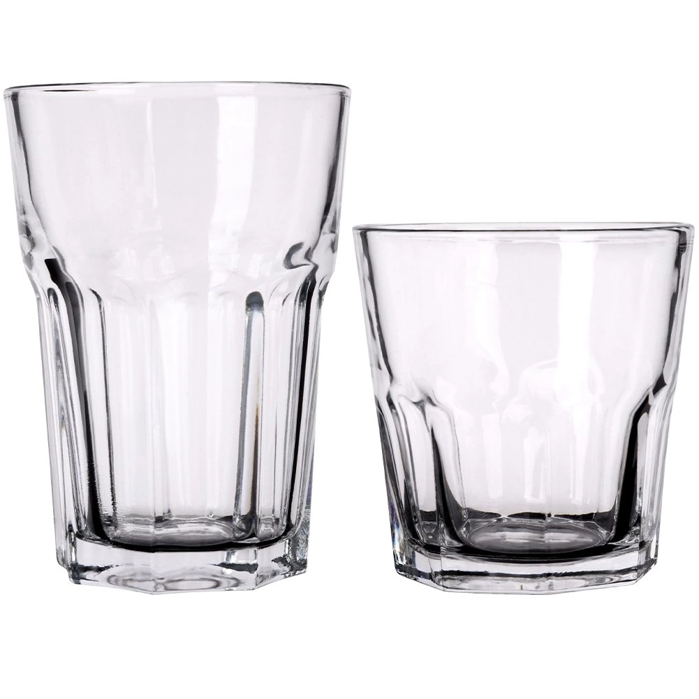 Set vključuje 6 manjših kozarcev 230 ml in 6 večjih 330 ml – idealni za vodo, sok in mešane pijače.