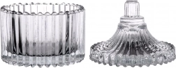 Stilska steklena posodica za sladkor s pokrovom v kompaktnih merah 6,5 × 9 cm in prostornini 80 ml je odlična izbira za vsakodnevno uporabo in slavnostne priložnosti. Rebrast okras daje pridih vintage elegance, prozorno steklo pa omogoča nadzor nad vsebino.