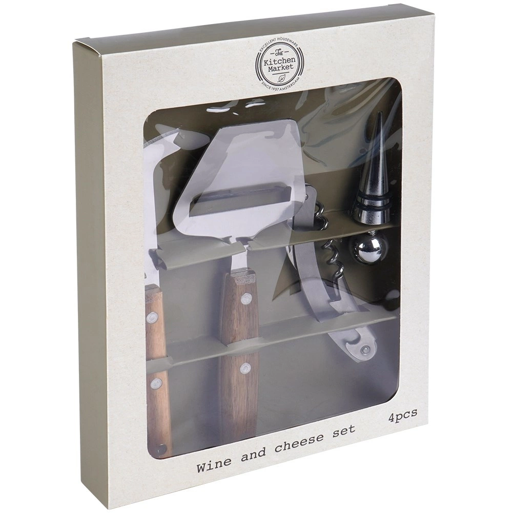 Ta univerzalen set dodatkov za vino in sire združuje kakovost, funkcionalnost in brezčasen dizajn. Odpirač omogoča hitro in varno odpiranje vina ter odstranjevanje kronastih zapork, zamašek pa ohranja svežino in aromo odprtih steklenic. Nož in rezalnik omogočata natančno rezanje sirov od mehkih do trdih.
