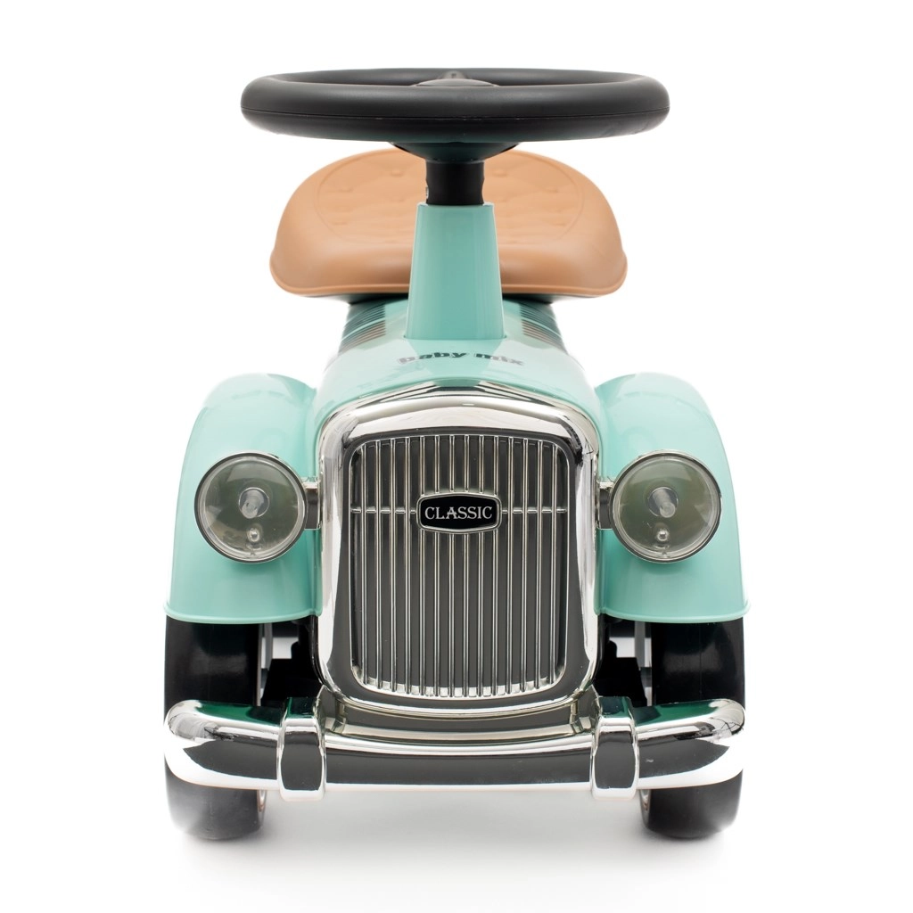 Stilni poganjalec Baby Mix z retro videzom v mentolovi barvi je idealen za otroke od 12 do 36 mesecev. Ponuja stabilno štirikolesno konstrukcijo, tiha EVA kolesa, vrtljiv volan s hupo in praktičen shranjevalni prostor pod sedežem. Lahek plastičen okvir z ergonomskim sedežem podpira razvoj ravnotežja in grobe motorike doma in na prostem.