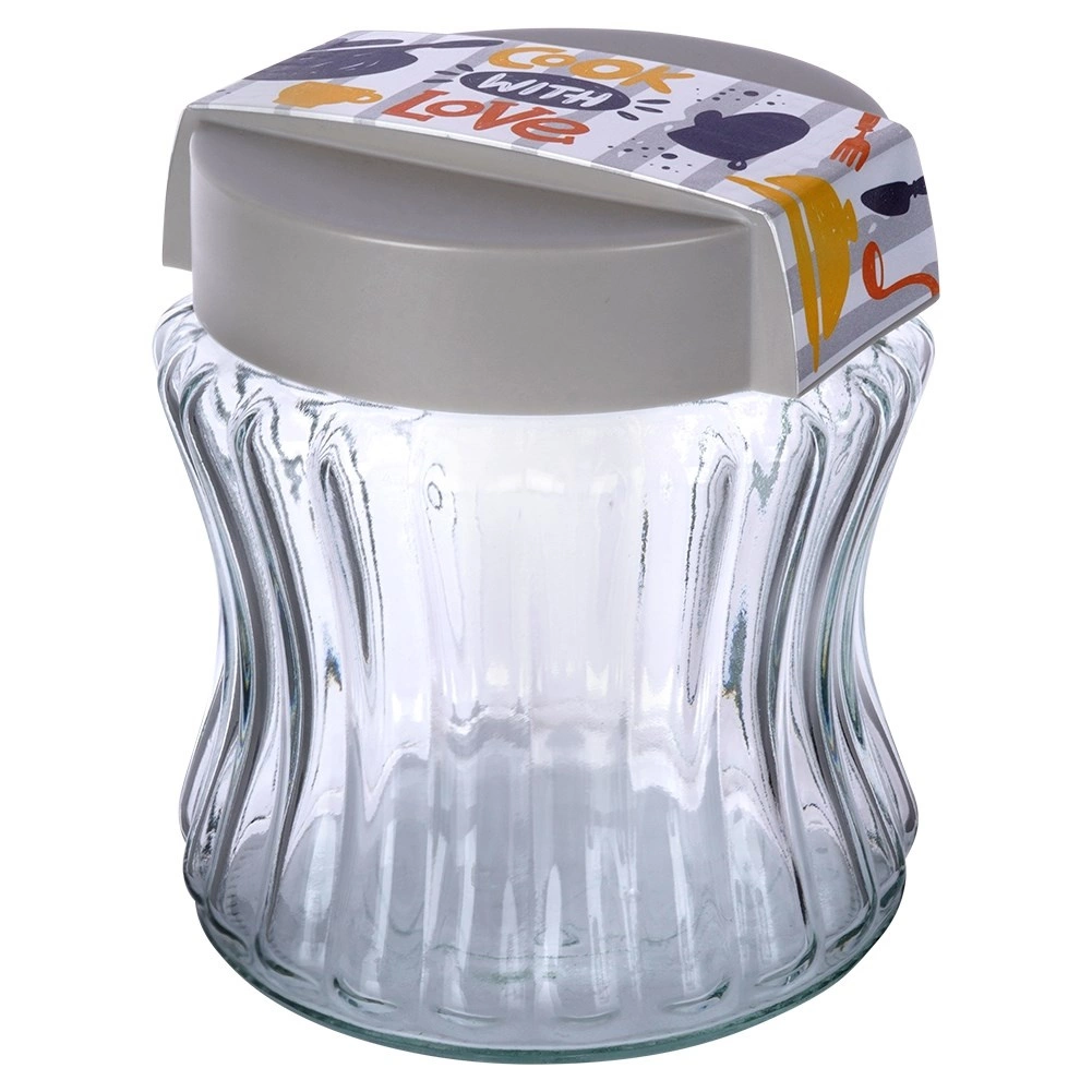 Stilska steklena posoda z valovitim reliefom in svetlo sivim pokrovom je idealna za shranjevanje moke, sladkorja, soli, drobtin, oreščkov, kave ali čaja. Trdno, prozorno steklo brez BPA je varno za živila in omogoča takojšen pregled vsebine brez odpiranja.