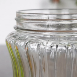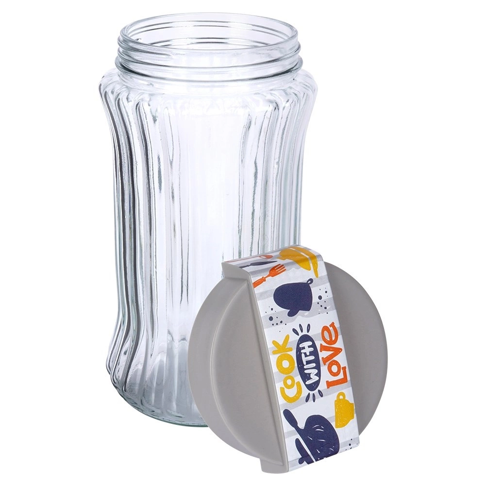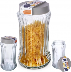 Elegantna in funkcionalna steklena posoda olajša organizacijo kuhinje in podaljša svežino sestavin. Zahvaljujoč navojnemu pokrovu s tesnilom ščiti vsebino pred vlago in vonjavami, medtem ko prozorno steklo omogoča takojšen nadzor nad količino. Rebraste stene zagotavljajo zanesljiv oprijem in stilski videz na pultu ali v shrambi.