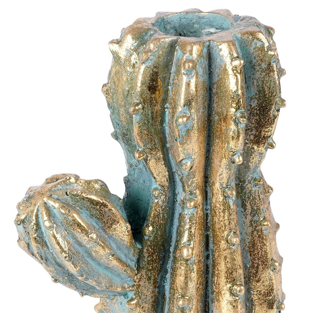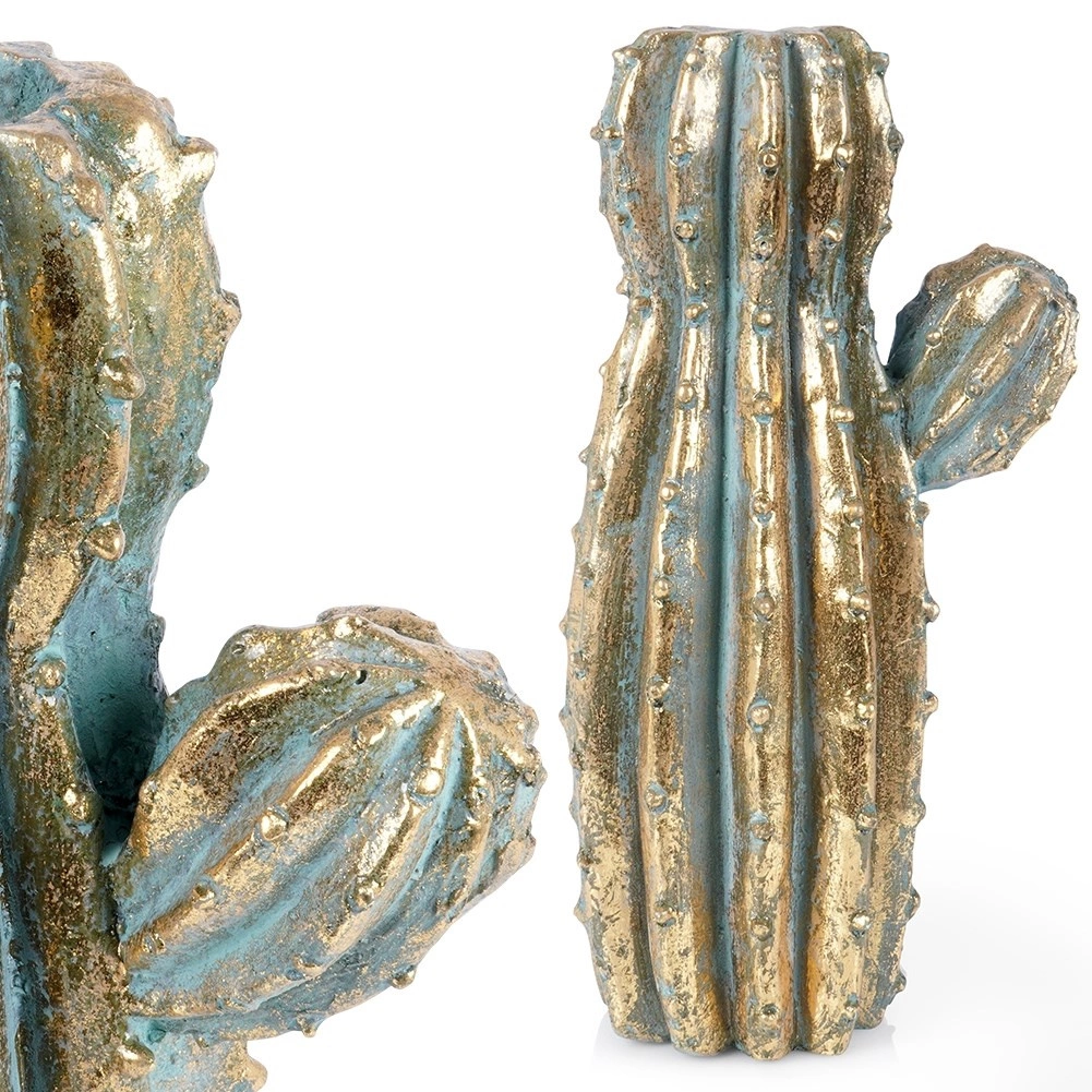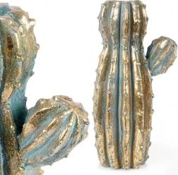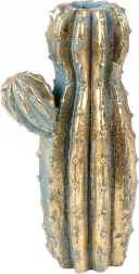 Ta dekorativna vaza v privlačnem dizajnu zlatega kaktusa združuje moderen videz in praktično uporabo. Izrazita struktura reber in drobnih izboklin zvesto posnema naravni kaktus, medtem ko kovinska površina z modro‑zelenimi odsevi ustvari učinkovit poudarek v vsakem interierju.