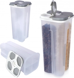 Ohranite red v kuhinji z inteligentnim zabojnikom, ki v enem kompaktnem ohišju shrani do štiri različna suha živila. Vsak predel ima svoj dozirni pokrov za hitro in natančno izsipavanje brez potrebe po odpiranju celotnega pokrova. Prosojne stene omogočajo takojšen nadzor zalog.