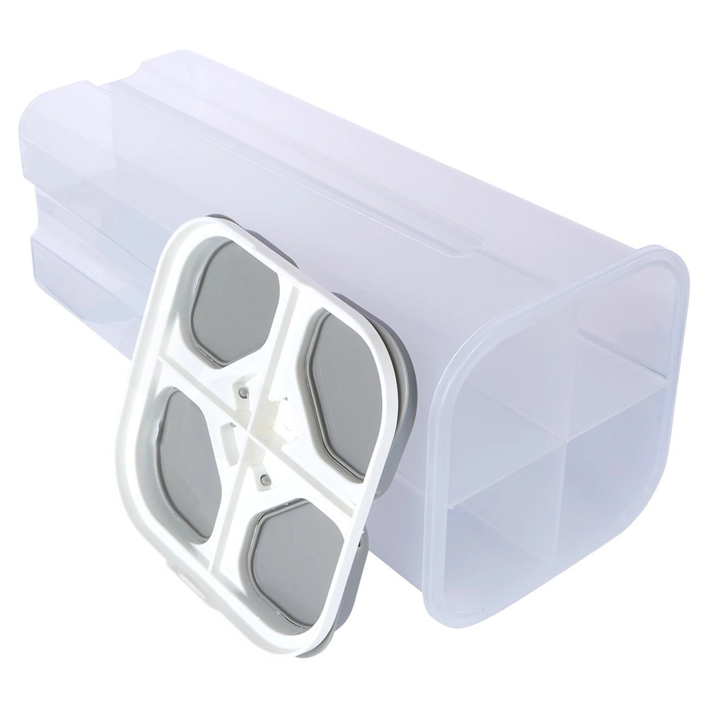 Shranite do štiri različne sestavine ločeno. Vsak predel ima svoj pokrovček s preklopom za čisto in natančno izsipavanje.