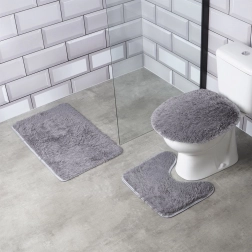 Obogatite kopalnico s komfortom in varnostjo. Trodelen komplet predpražnikov prinaša mehak in topel občutek pod stopali ter hkrati ščiti pred hladom tal. Nežen siv odtenek zlahka uskladite z vsakim slogom.
