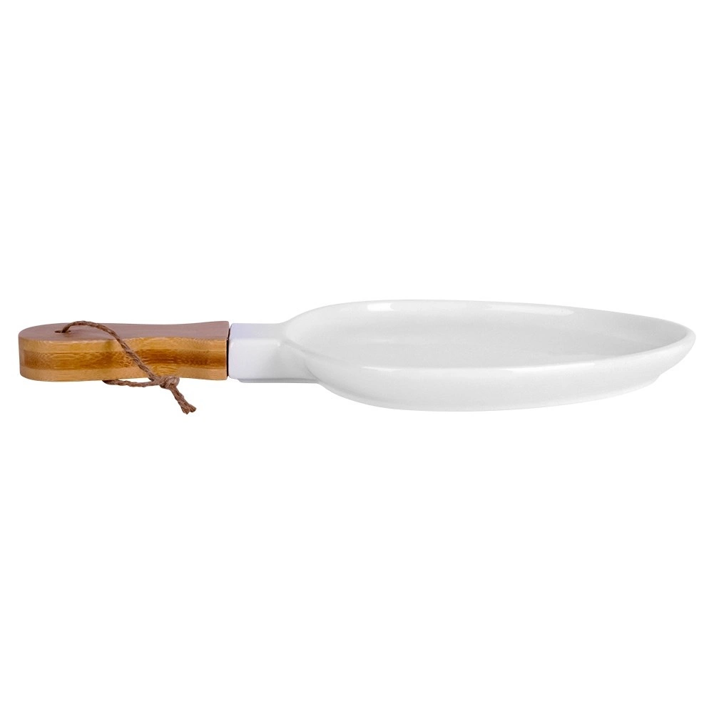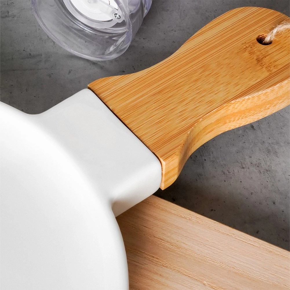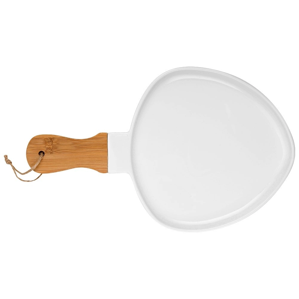Zahvaljujoč udobnemu oprijemu z odprtino in vrvico se plošča enostavno prenaša in jo lahko tudi obesite za prihranek prostora. Odlikuje jo univerzalna uporaba v gospodinjstvu, restavraciji in ob posebnih priložnostih. Kombinacija naravnega bambusovega ročaja in bele glazirane porcelanaste površine deluje elegantno in reprezentativno.