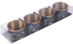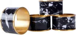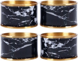Dodajte svojemu pogrinjku izjemen šarm. Ti kovinski obročki za prtičke z bleščečim zlatim obrobjem in izrazitim motivom črnega marmorja so idealni za slavnostne večerje, družinska srečanja in vsakodnevno serviranje. Večkrat uporabni, trpežni in skrbno izdelani.