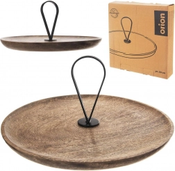 Ta elegantna servirna etažna skleda je izdelana iz kakovostnega mangovega lesa, ki je naravno odporen na vlago in deformacije, ne vpija in se hitro suši. Sredinski kovinski ročaj v črni barvi olajša rokovanje in posodi doda sodoben industrijski videz.